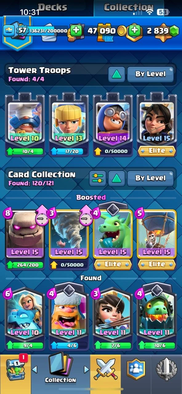 11 000 Trophies | XP Lvl 57❗️| 37 MAXED CARDS❗️| 13 ELITE LEVEL CARD ❤️🔥| 15 EVOLUTIONS📈 | 102 EMOTES | 100% safe account | instant delivery