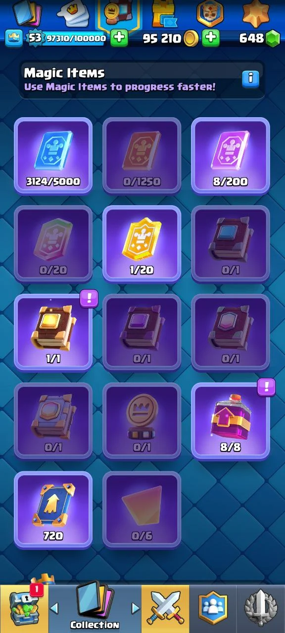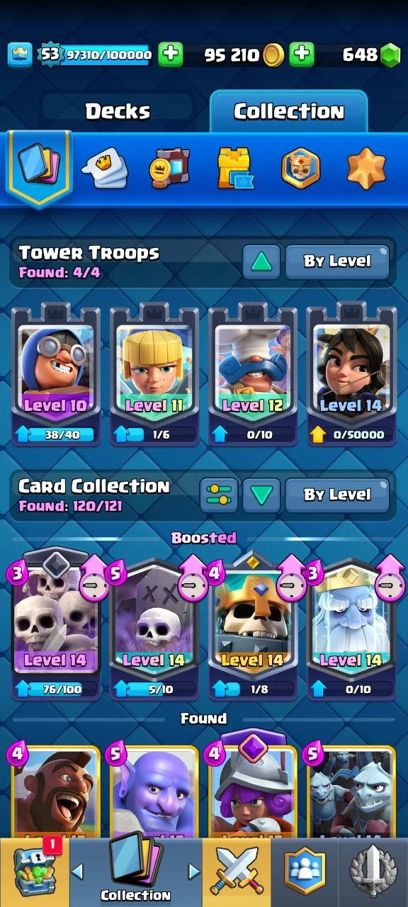 💥 26 MAX ⚡ 6 EVO 💫 KT14 💎 8086 TROPHIES 🏆 LVL 53 🎊 29 EMOTES 🎭 4 TOWER SKINS 🌟 BONUS TH14 🎉