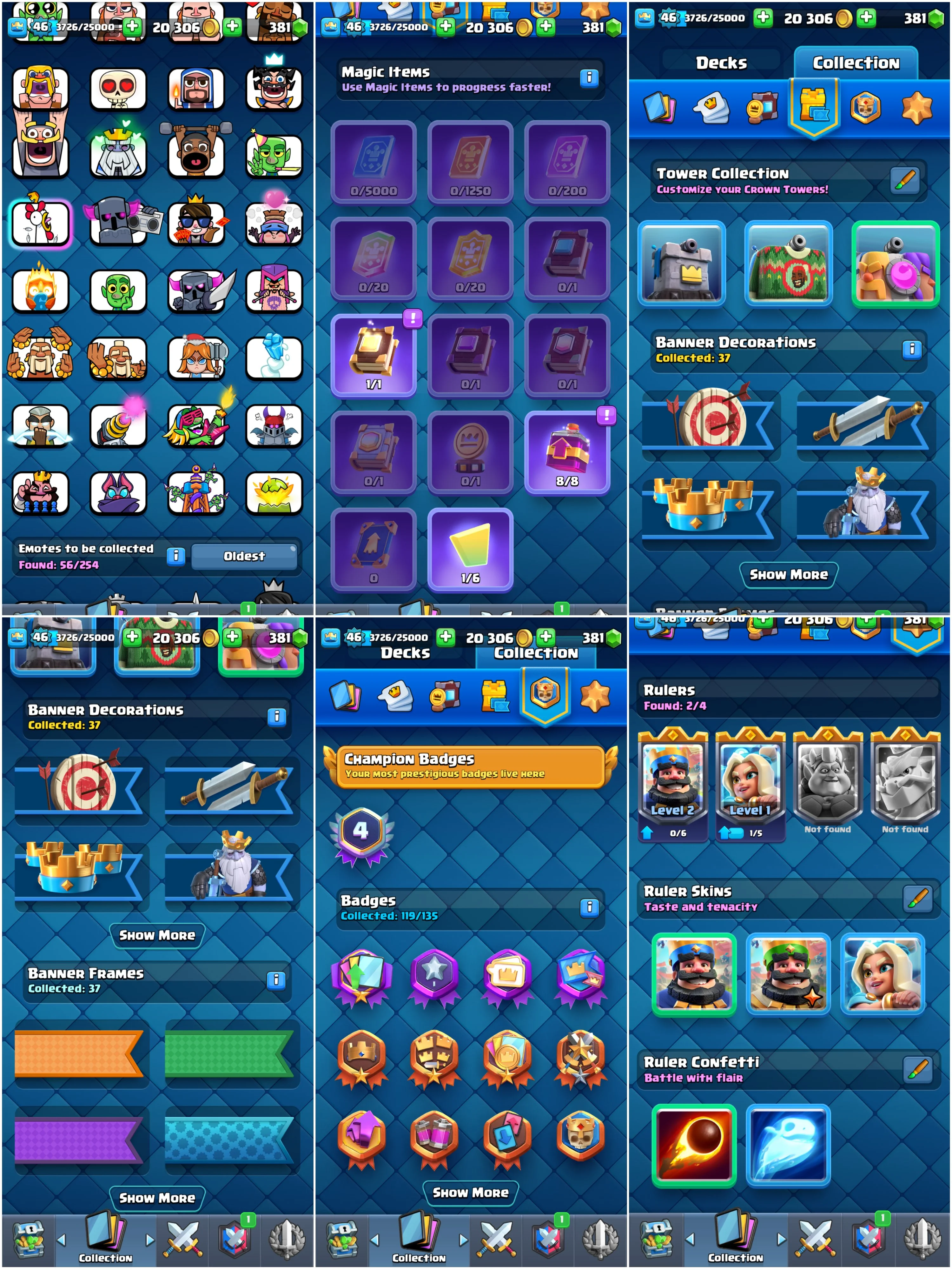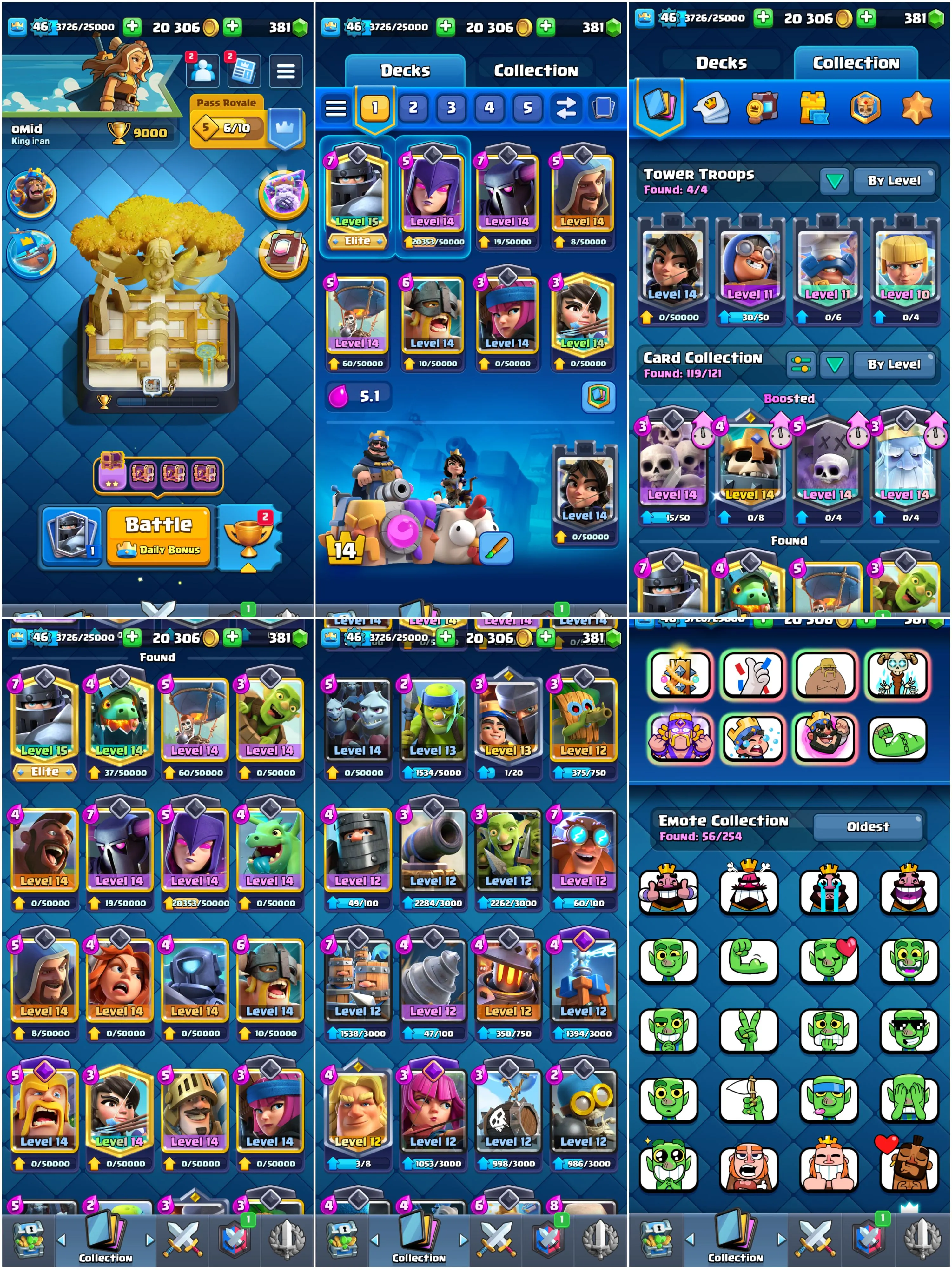 🎖️ 4 Years Badge 🏆 Level 46 + KT 14 ⚔️ 9000 Trophies 🌟 17 Max Cards (1 Elite) + 4 Evolutions 🎭 56 Emotes • 3 Tower Skins 🚀 Instant Delivery