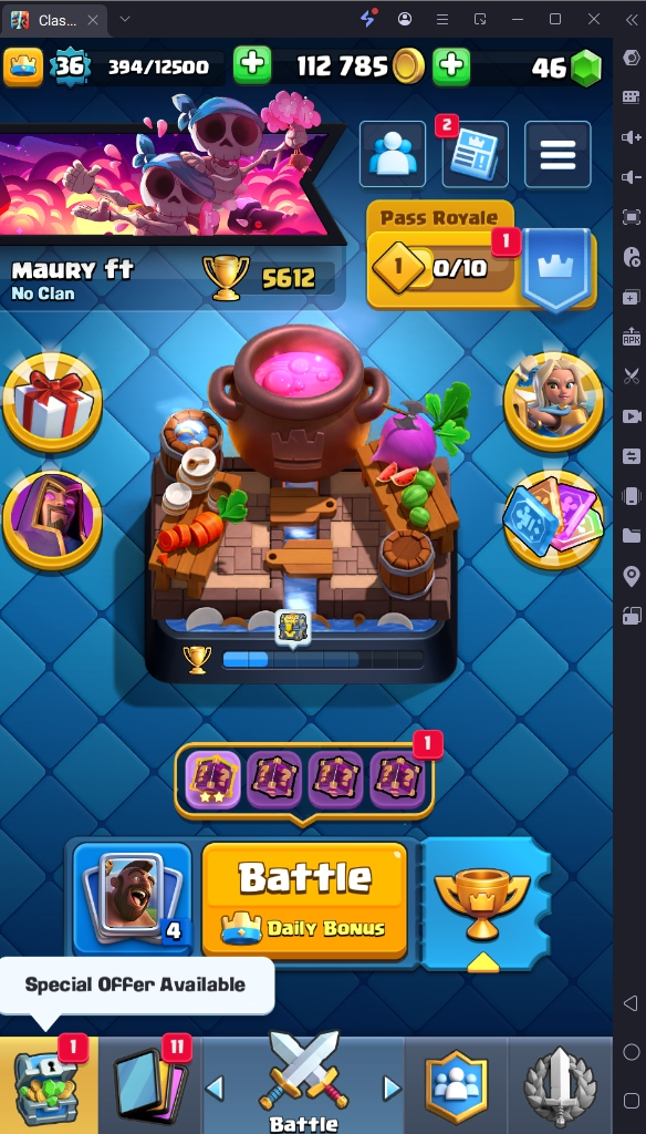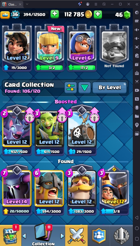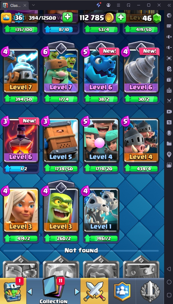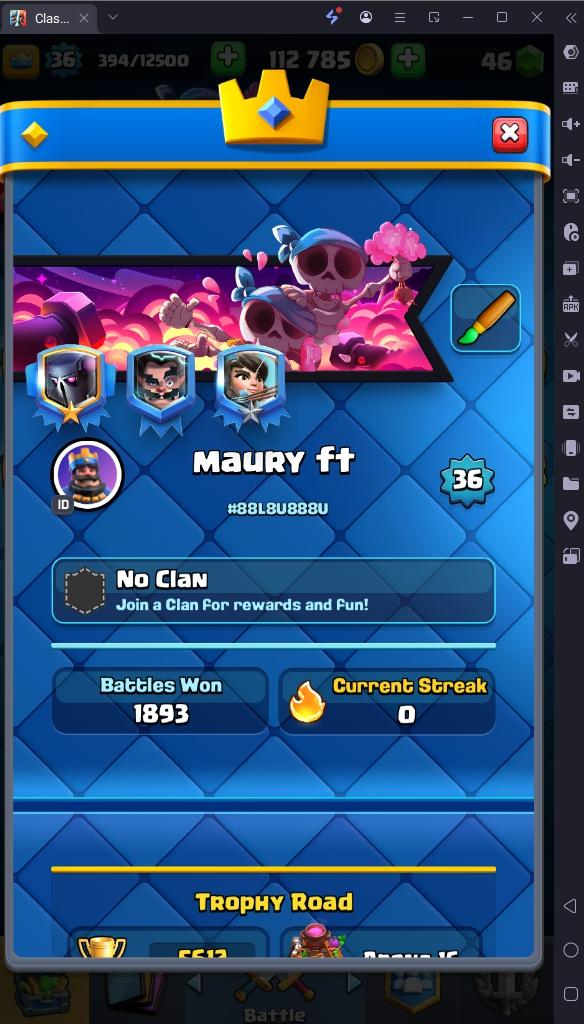 5612 TROPHY 🏆 36 LVL 💯 KT 12 👑 106 CARDS ♦️ 1 MAX CARDS 👑 0 ELITE CARDS 🔮 0 EVO 💯 EMOTE 12 🎭 #88L8U888U ⸱ TAG ACCOUNT ♥️