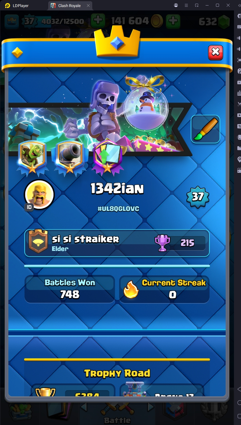 6384 TROPHY 🏆 37 LVL 💯 KT 12 👑 115 CARDS ♦️ EMOTE 29 🎭 #UL8QGL0VC ⸱ TAG ACCOUNT ♥️