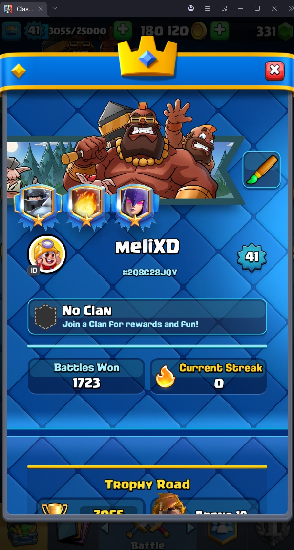 7056 TROPHY 🏆 41 LVL 💯 KT 13 👑 112 CARDS ♦️ EMOTE 46 🎭 #2Q8C28JQY ⸱ TAG ACCOUNT ♥️