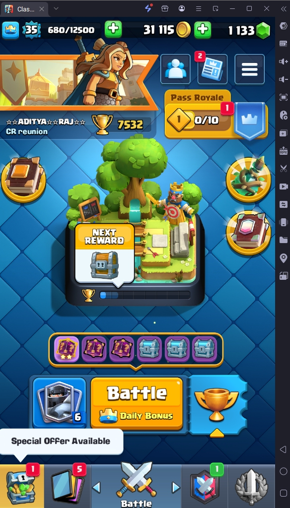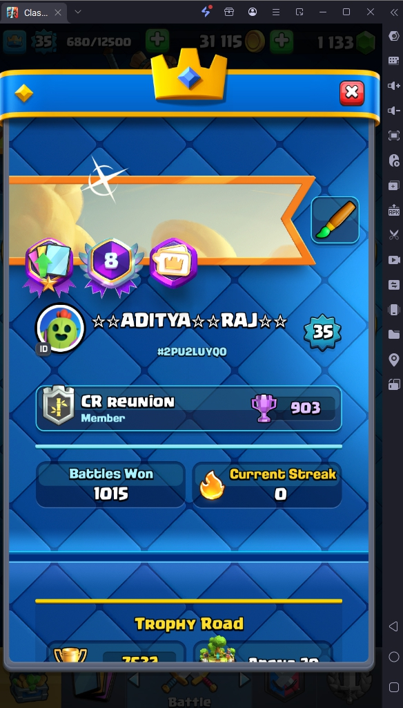 7532 TROPHY 🏆 35 LVL 💯 KT 12 👑 116 CARDS ♦️ 2 MAX CARDS 👑 0 ELITE CARDS 🔮 5 EVO 💯 EMOTE 18 🎭 #2PU2LUYQ0 ⸱ TAG ACCOUNT ♥️