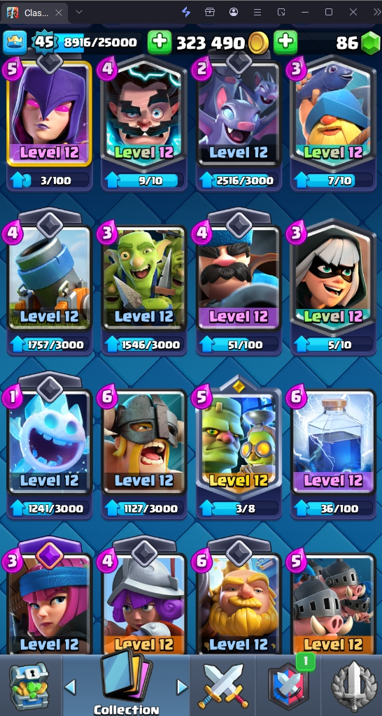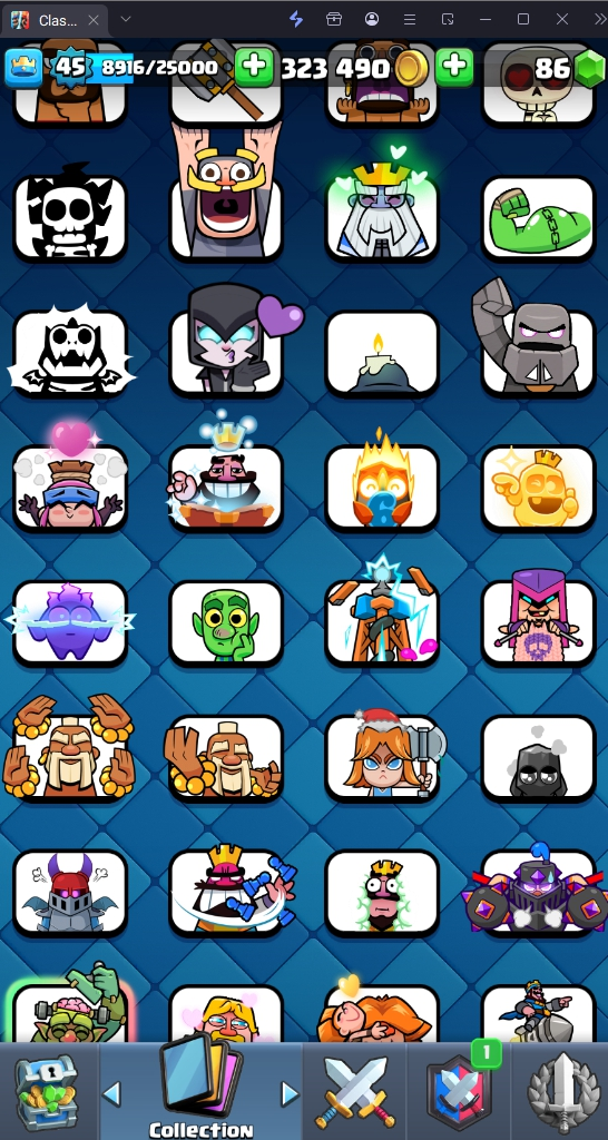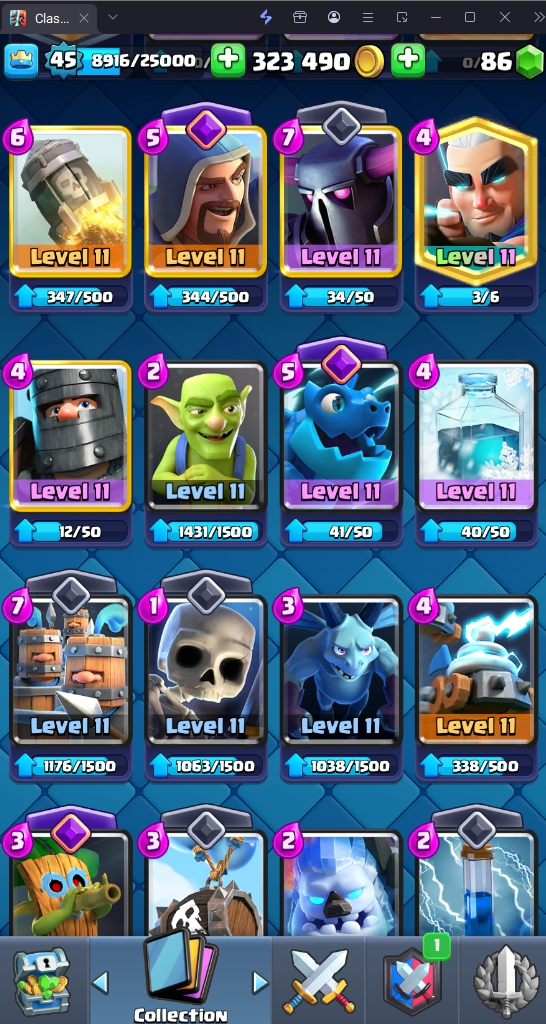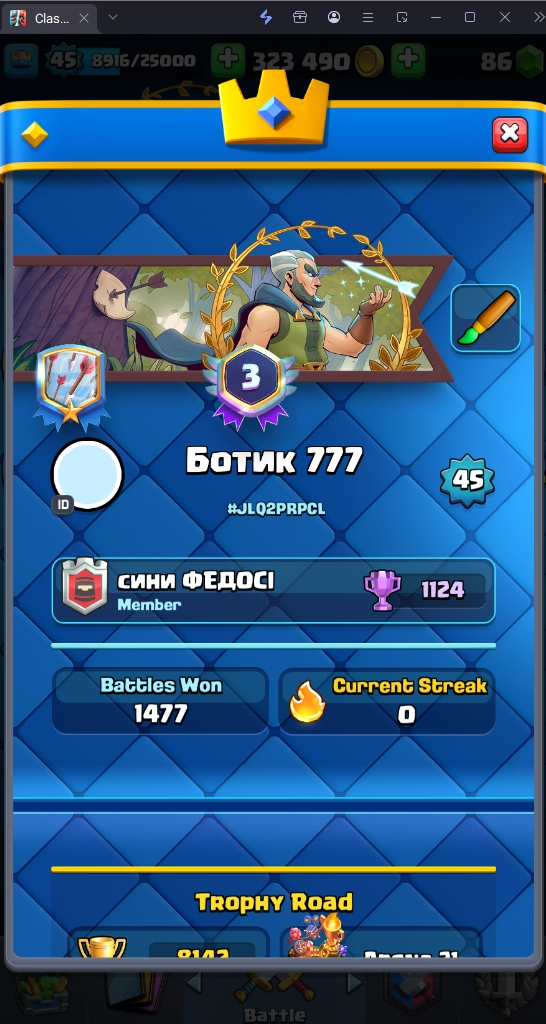 8142 TROPHY 🏆 45 LVL 💯 KT 14 👑 121 CARDS ♦️ 1 MAX CARDS 👑 1 ELITE CARDS 🔮 11 EVO 💯 EMOTE 66 🎭 #JLQ2PRPCL ⸱ TAG ACCOUNT ♥️