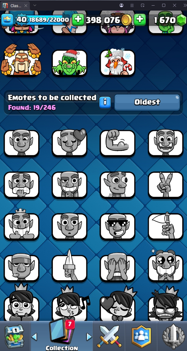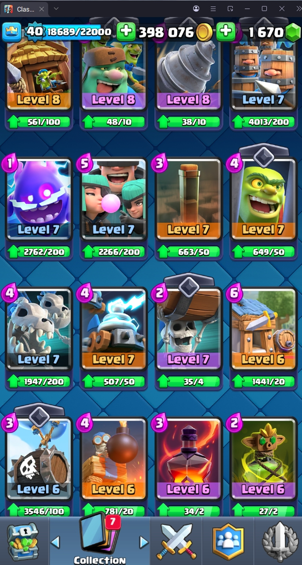 8247 TROPHY 🏆 40 LVL 💯 KT 13 👑 117 CARDS ♦️ 5 MAX CARDS 👑 0 ELITE CARDS 🔮 1 EVO 💯 EMOTE 19 🎭 #28GVUYPYV ⸱ TAG ACCOUNT ♥️