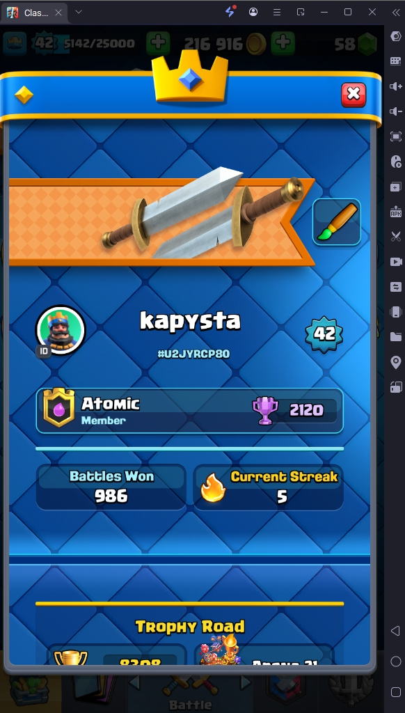 8308 TROPHY 🏆 42 LVL 💯 KT 14 👑 116 CARDS ♦️ #U2JYRCP80 ⸱ TAG ACCOUNT ♥️