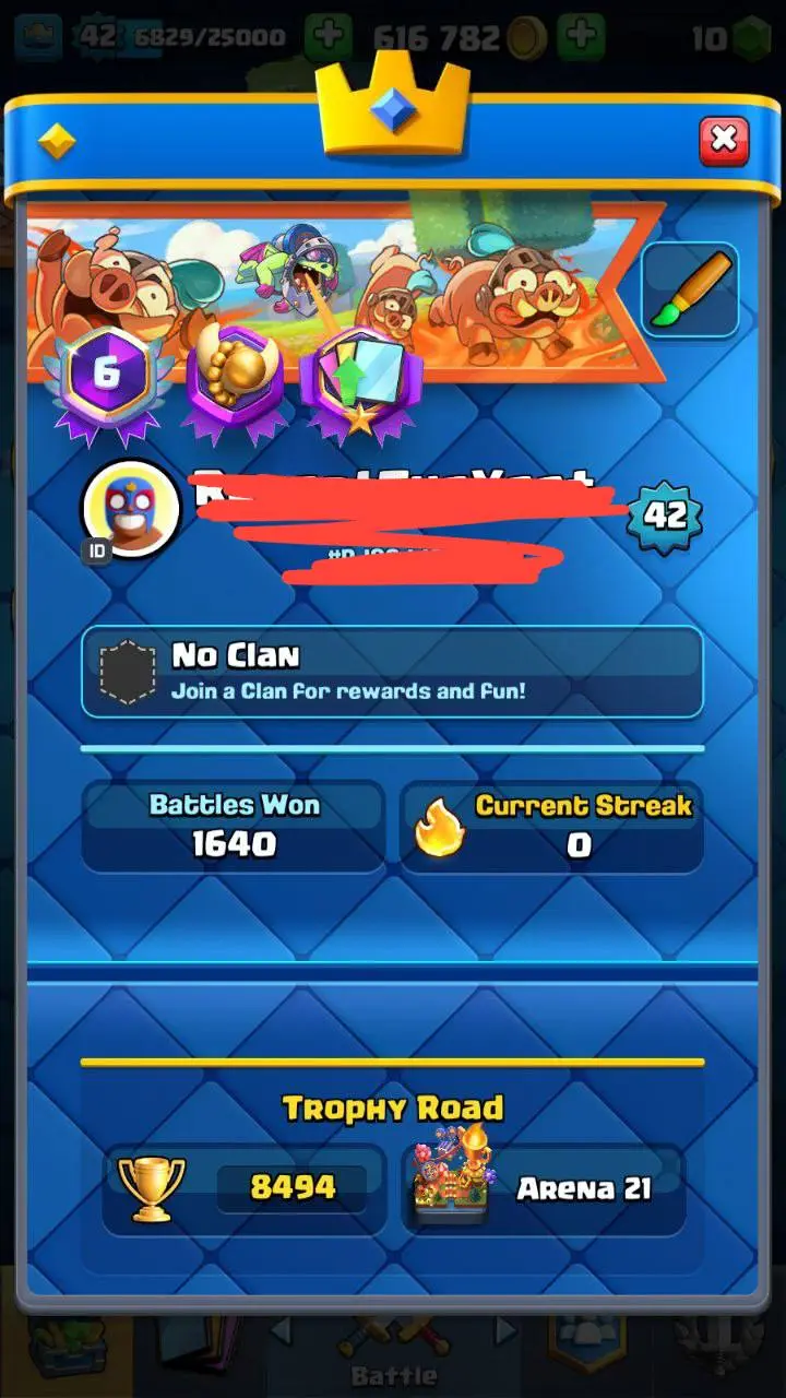 8494 Trophies | XP Lvl 42❗️| 5 MAXED CARDS❗️| 1 ELITE LEVEL CARD ❤️🔥| 3 EVOLUTIONS📈 | 31 EMOTES | 100% safe account | instant delivery