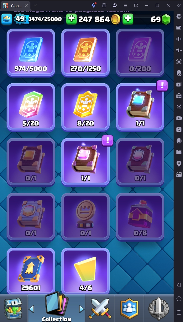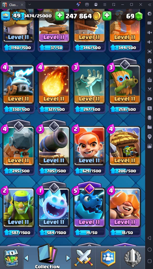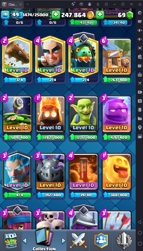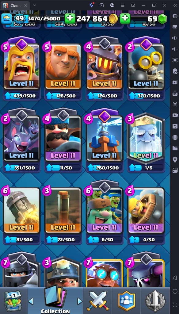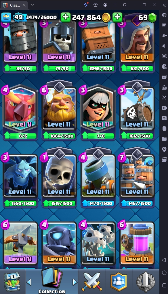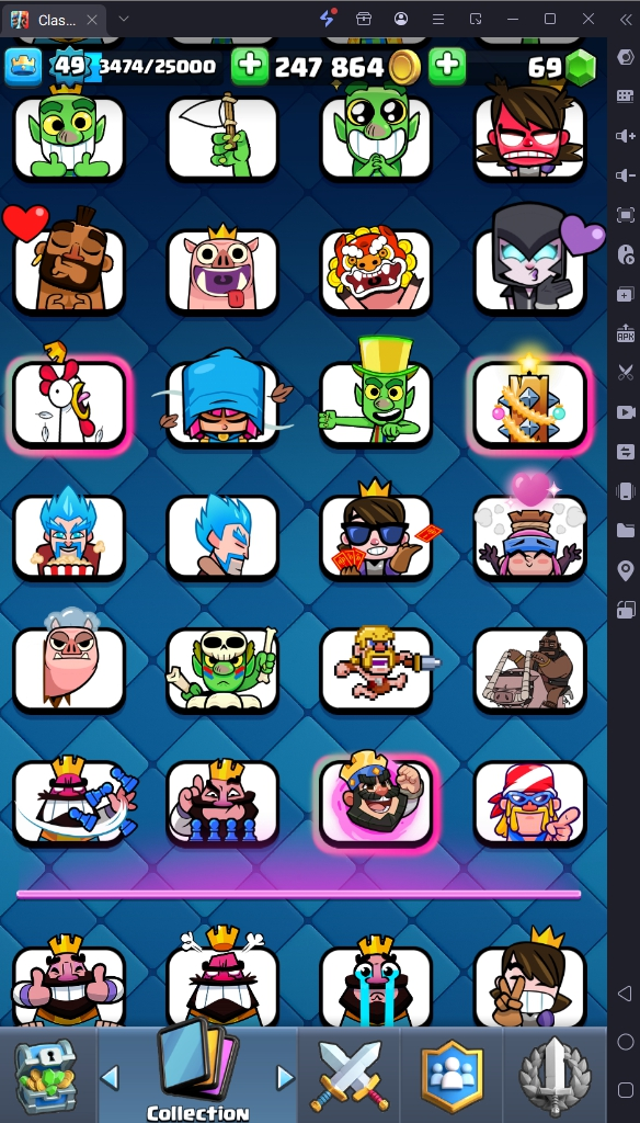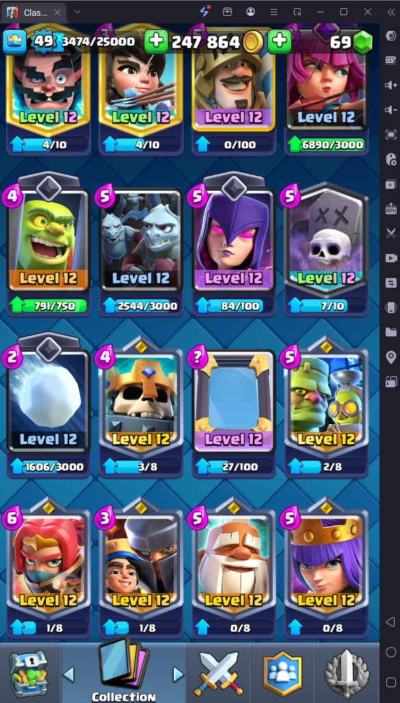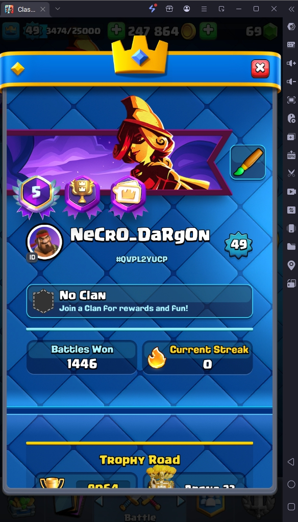 9064 TROPHY 🏆 49 LVL 💯 KT 14 👑 118 CARDS ♦️ 4 MAX CARDS 👑 0 ELITE CARDS 🔮 7 EVO 💯 EMOTE 50 🎭 #QVPL2YUCP ⸱ TAG ACCOUNT ♥️