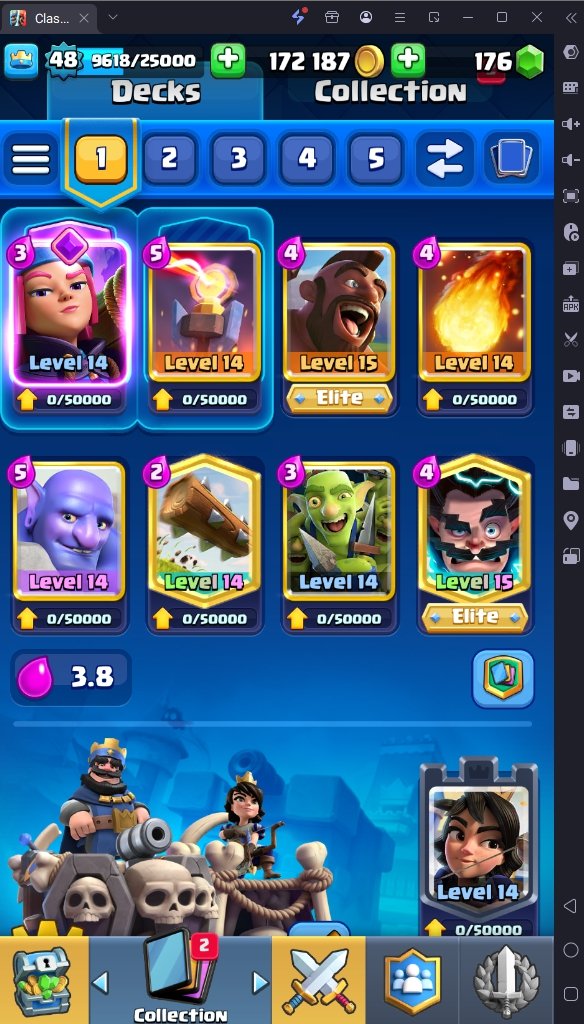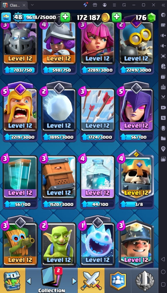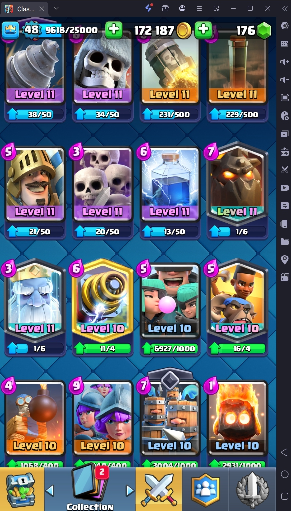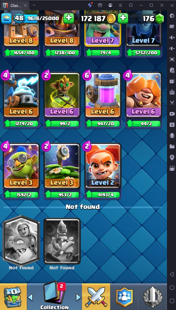 9066 TROPHY 🏆 48 LVL 💯 KT 14 👑 119 CARDS ♦️ 11 MAX CARDS 👑 2 ELITE CARDS 🔮 8 EVO 💯 EMOTE 66 🎭 #9VQQ2LU8R ⸱ TAG ACCOUNT ♥️