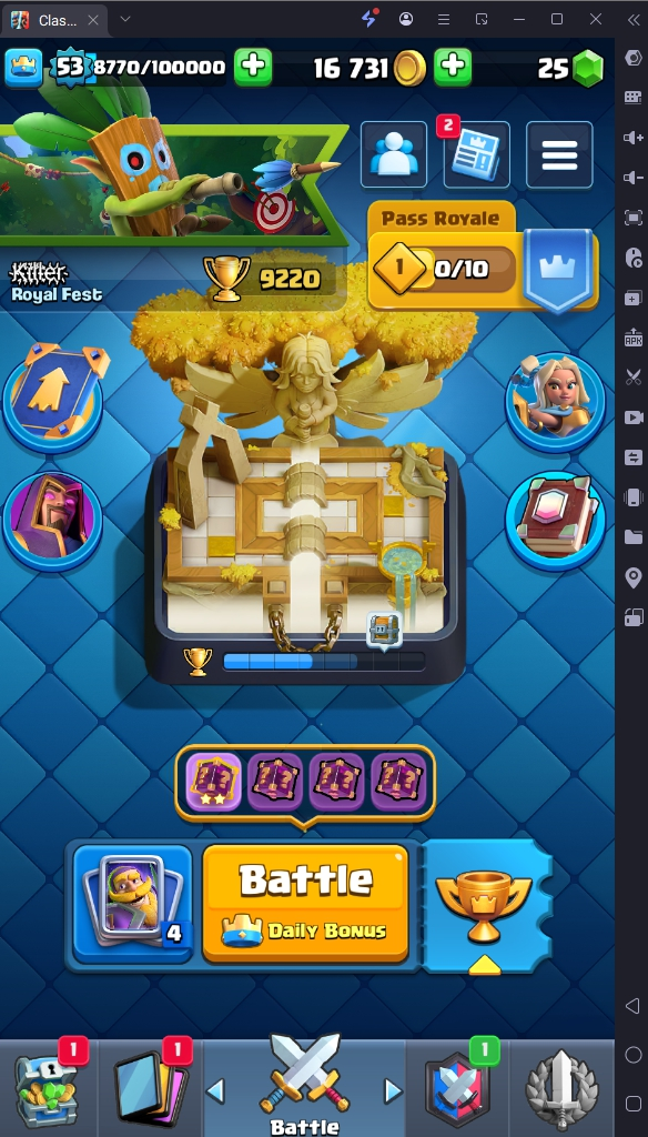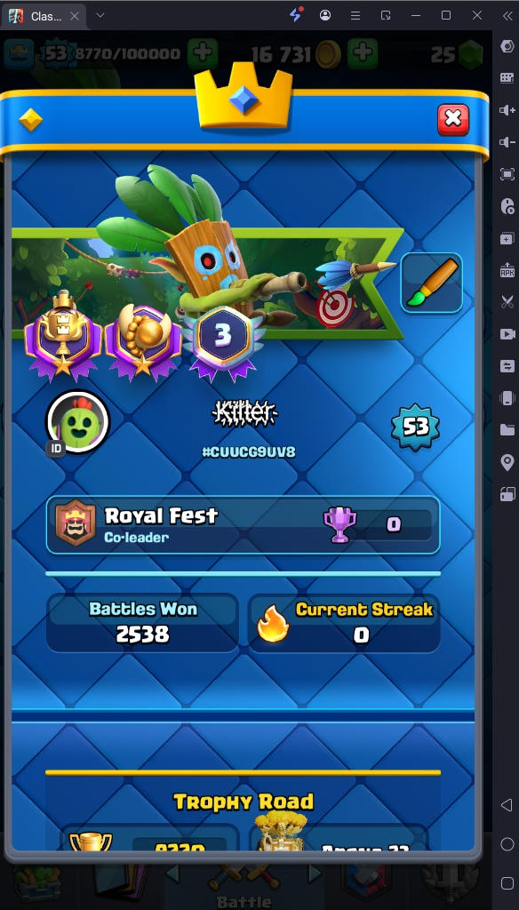 9220 TROPHY 🏆 53 LVL 💯 KT 14 👑 120 CARDS ♦️ EMOTE 95 🎭 #CUUCG9UV8 ⸱ TAG ACCOUNT ♥️