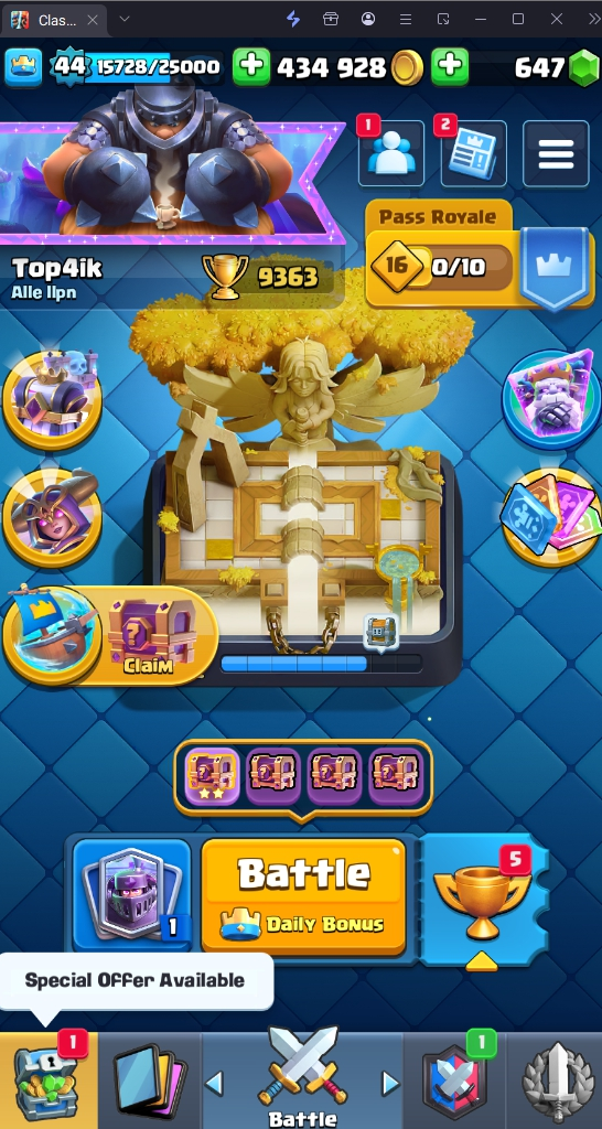9363 TROPHY 🏆 44 LVL 💯 KT 14 👑 120 CARDS ♦️ 6 MAX CARDS 👑 2 ELITE CARDS 🔮 8 EVO 💯 EMOTE 39 🎭 #QJLPCPC99 ⸱ TAG ACCOUNT ♥️