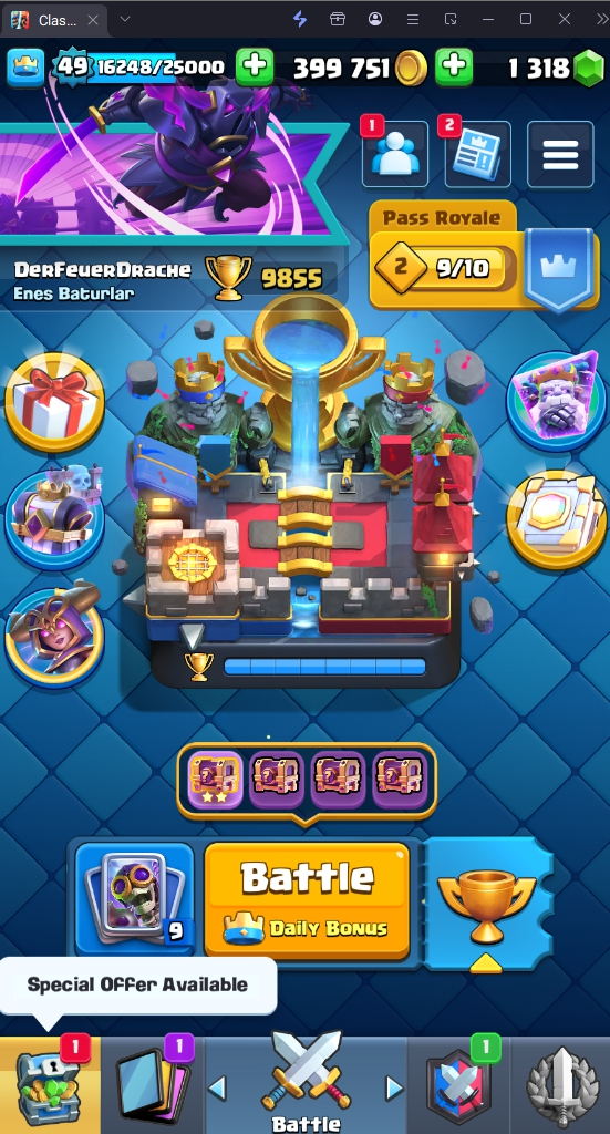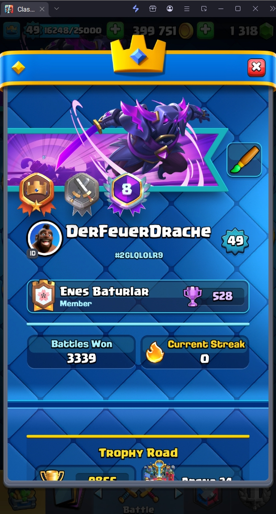 9855 TROPHY 🏆 49 LVL 💯 KT 14 👑 118 CARDS ♦️ 22 MAX CARDS 👑 2 ELITE CARDS 🔮 8 EVO 💯 EMOTE 52 🎭 #2GLQL0LR9 ⸱ TAG ACCOUNT ♥️