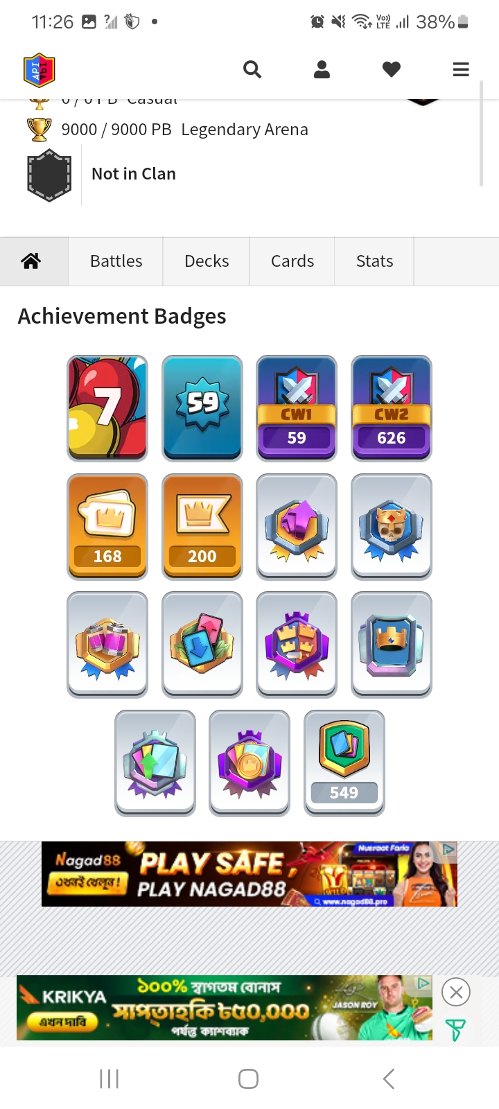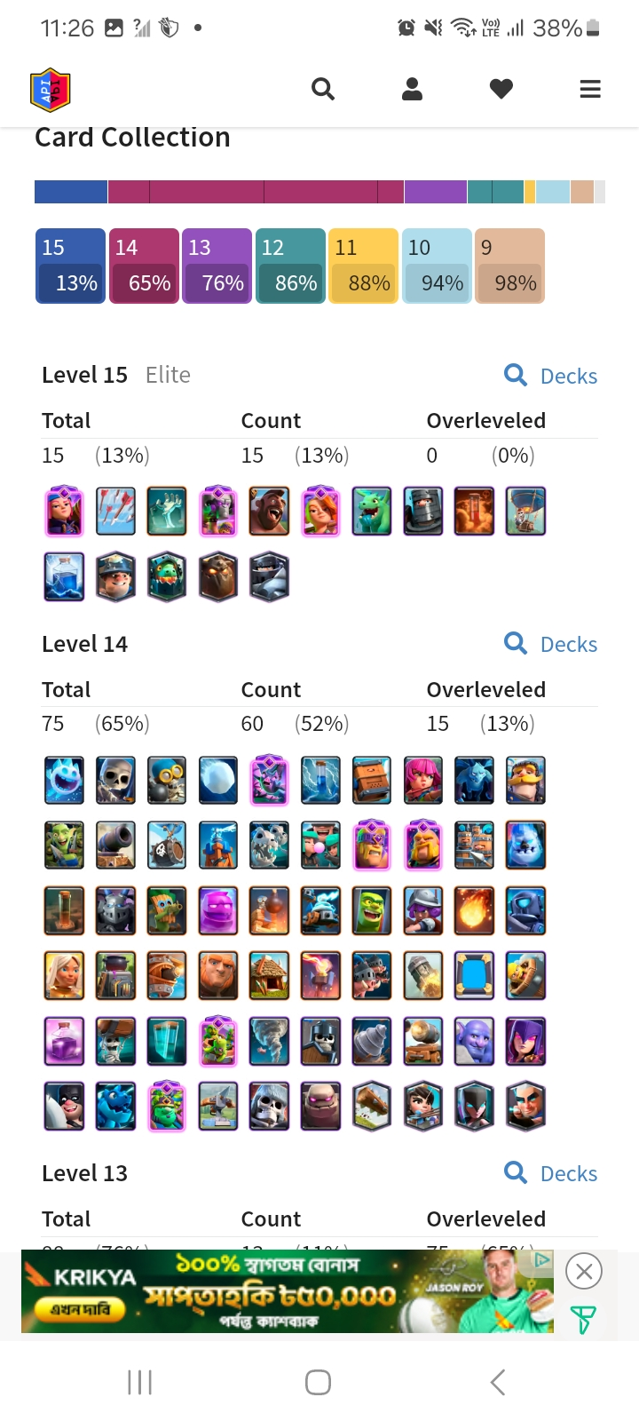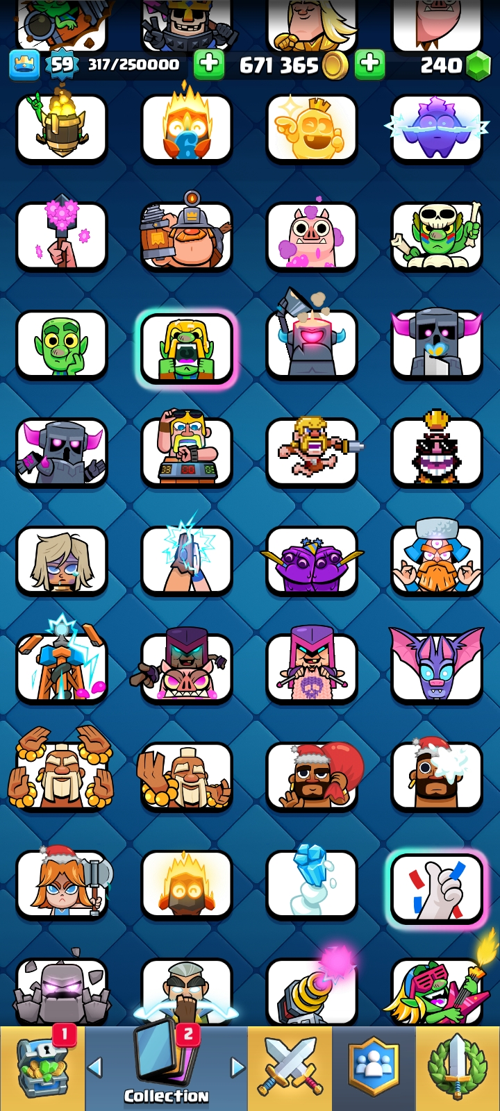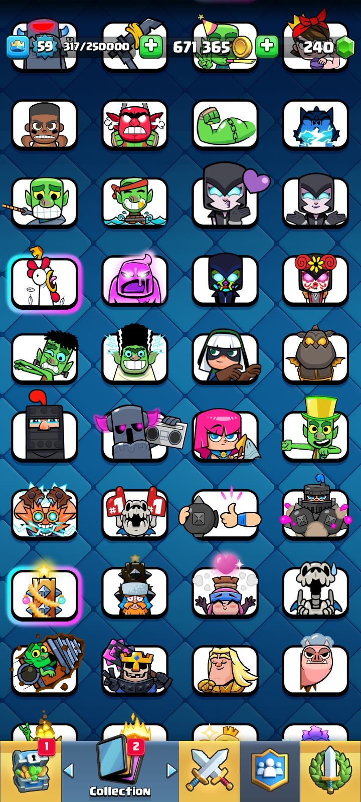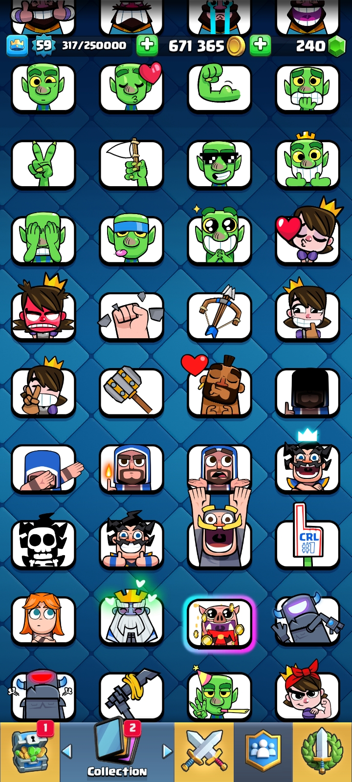 Android / Ios ⚜️ PREMIUM EMOTES ⭕ 75 Card Max [Lvl 14 ] ⭕Kt-15 ✅ Legendary Arena [23] ⭕ LVL 59 ⭕ 15 Elite ⭕ 10 Evo ⭕ Premium 168 Emotes ⭕ 7 Years Badge ⭕BEST ON CHEAP PRICE