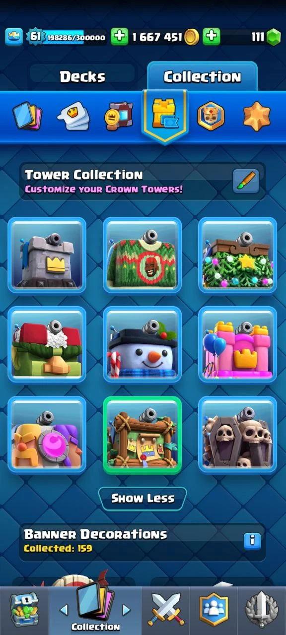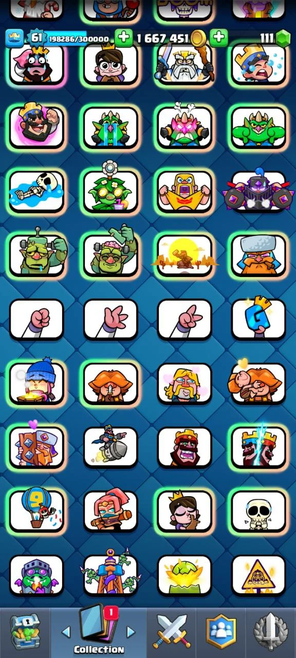 ✨️ CHEAPEST 💎 111 MAXED CARDS 👑 19 EVOLVED 😈 61 XP 🤯 8 TOWER SKINS 🌟 CHESS KING EMOTE 🏅 29 ELITE 💰STONE PAPER SCISSOR EMOTE 👑 GOBLIN EMOTES✨️15062 TROPHIES ✅