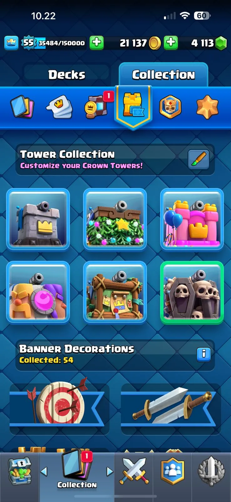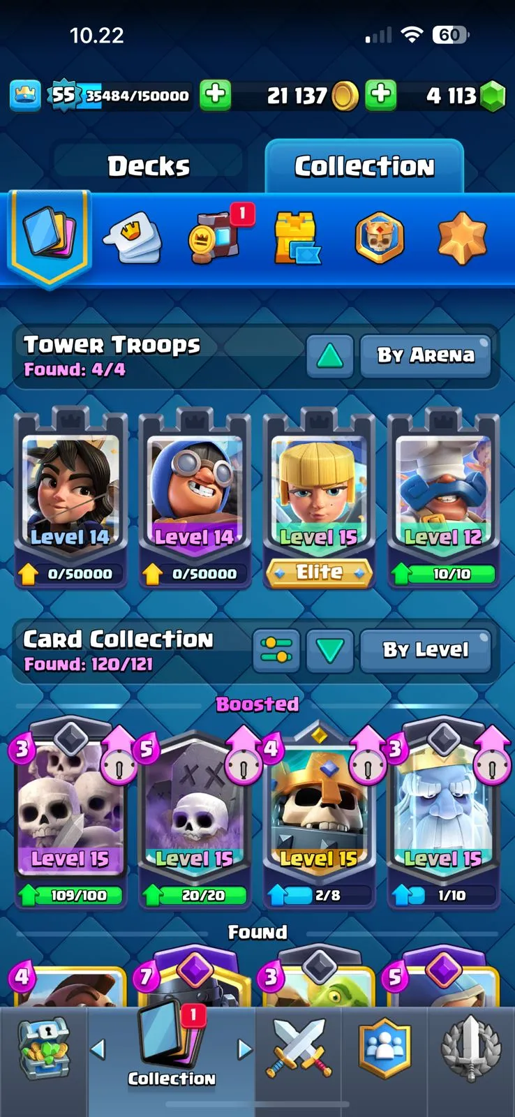 CHEAPEST🔥CR LV 55 [ KT 15 ]🔥14 EVO & 9 ELITE🔥EMOTE 30🔥ARENA 24 [ TROPHY 9581 ]🔥TOWER SKINS 6🔥FULL ACCESS & GUARANTEED🔥