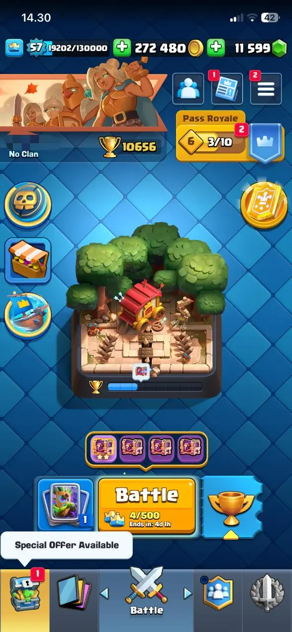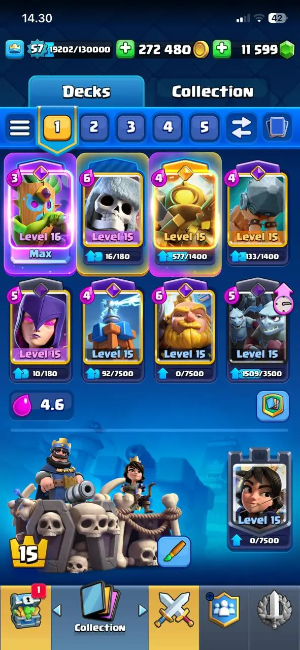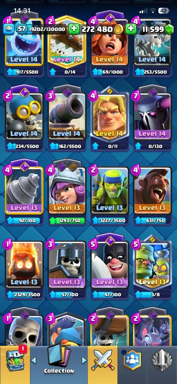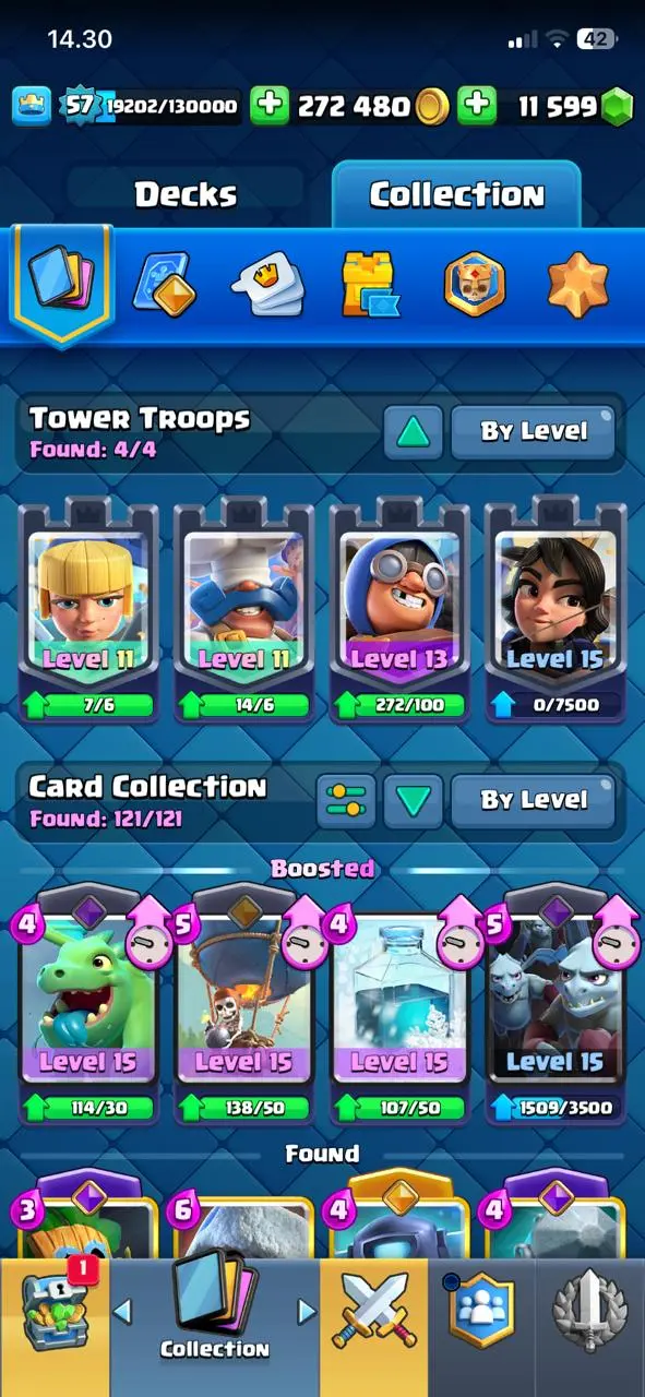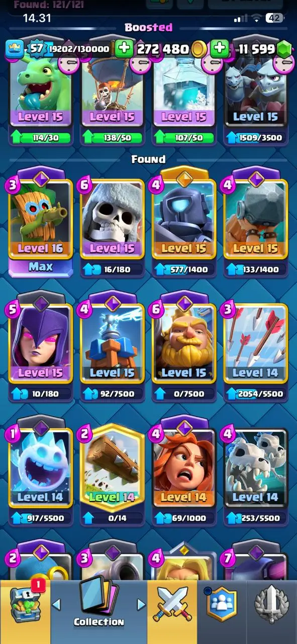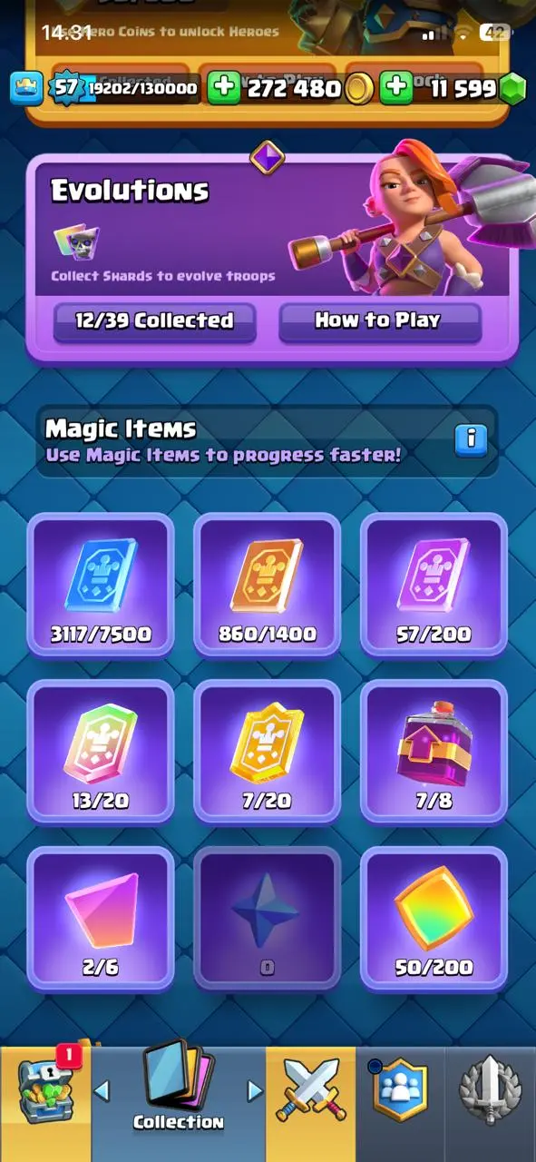 cheapest🔥cr lv 57🔥evo 12🔥arena 26🔥trophy 10656🔥gems 11599🔥full access account🔥