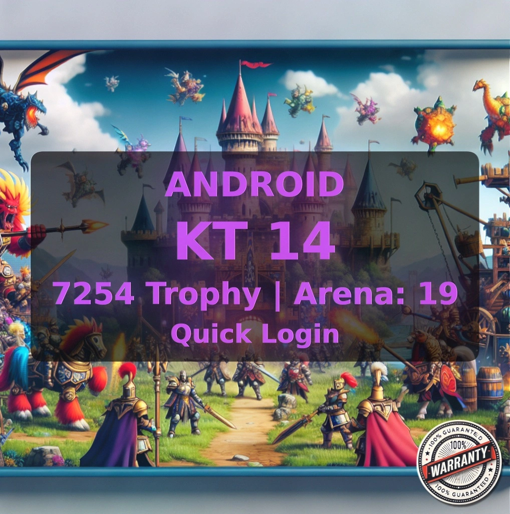 KT 14 LEVEL 53+Trophies:7254+4 Evolution+118 Cards+4 Cards (MAX) + 14 Cards (14LVL)+5 Tower Skins+42 Emotes+1.4KK Gold+7540 Gems+IOS/ANDROID #LOT-164809