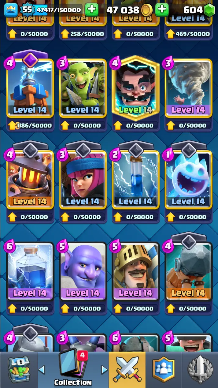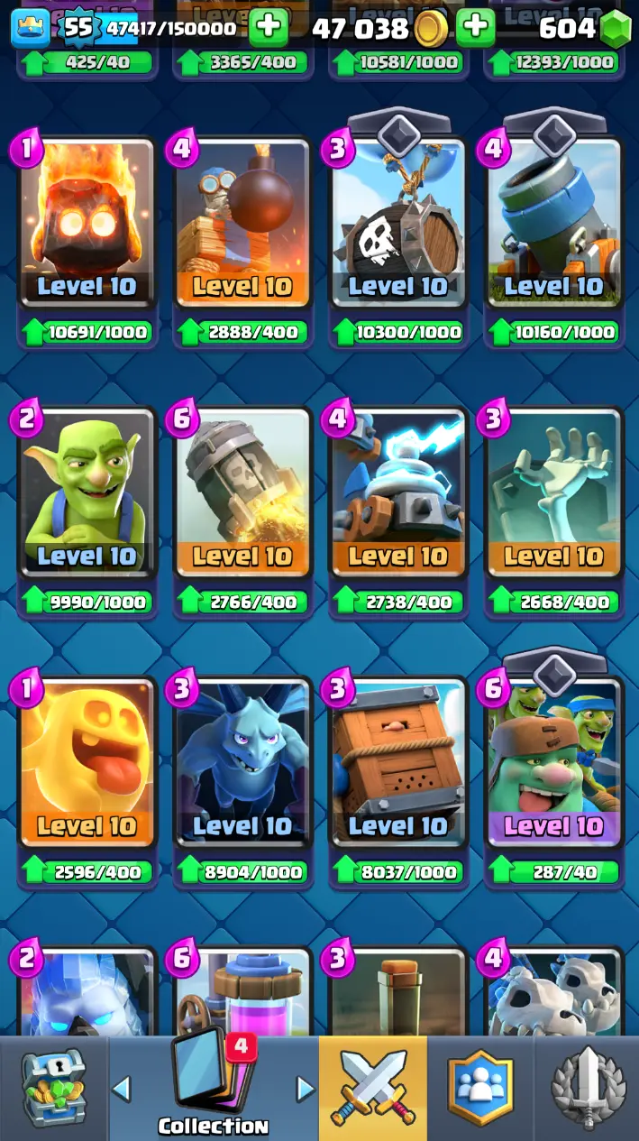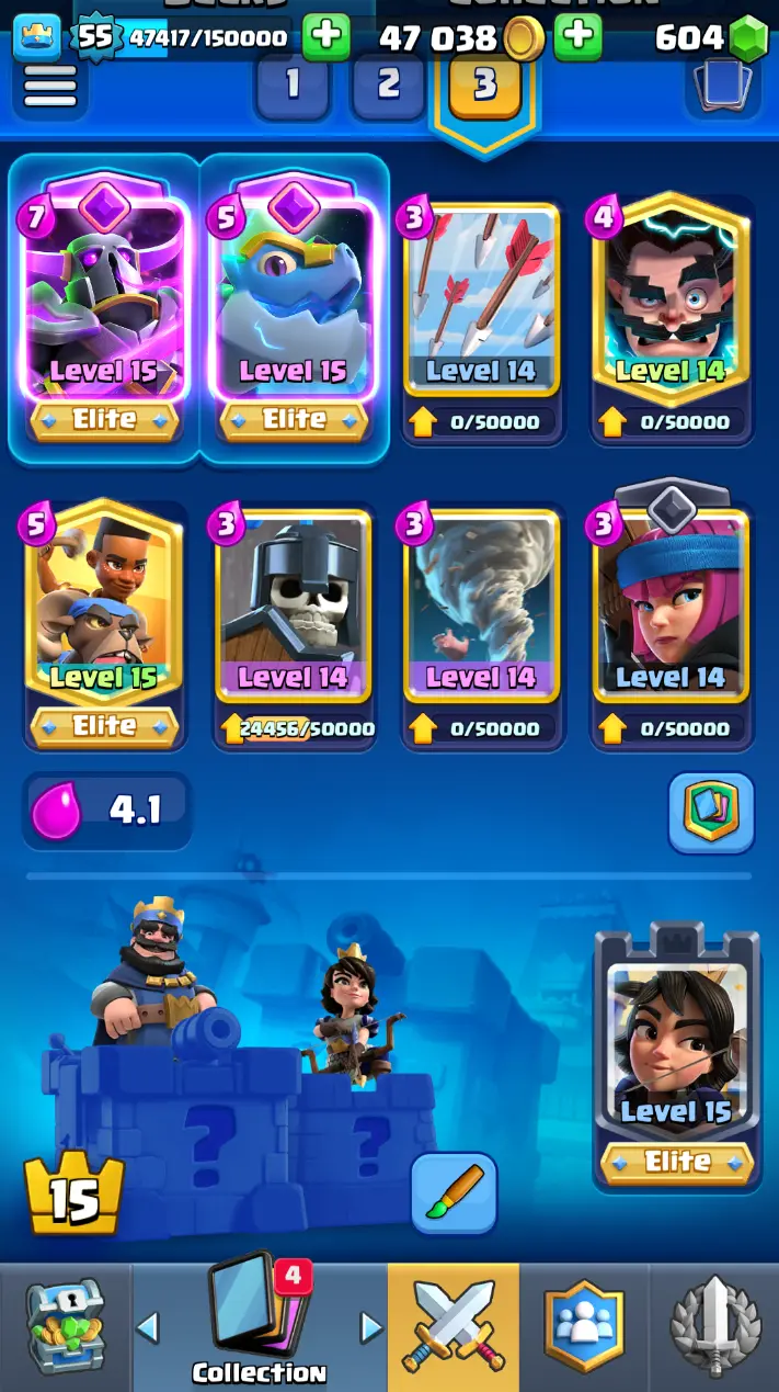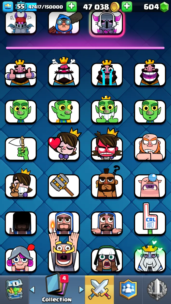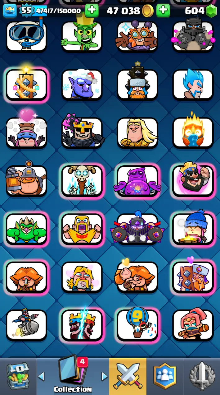 ◀️ KT 15 ▶️ LEVEL 55 🤩 9021 TROPHIES 🏆 6 ELITE CARD 🙀 33 MAX CARD 😎 7 EVO ☠️ 95 EMOTE 😍 6 SKIN 👽 121 CARDS 💳 47k GOLD 💰 604 GEMS 💎 RL88