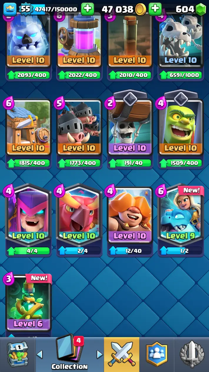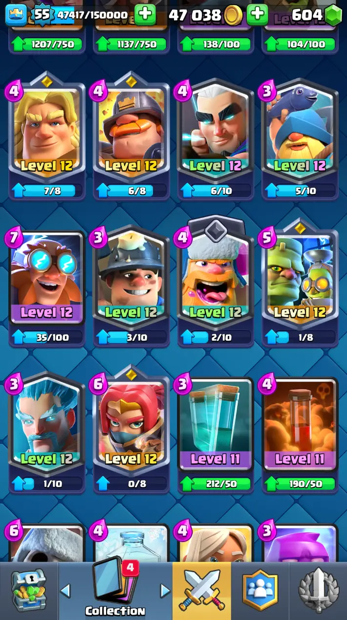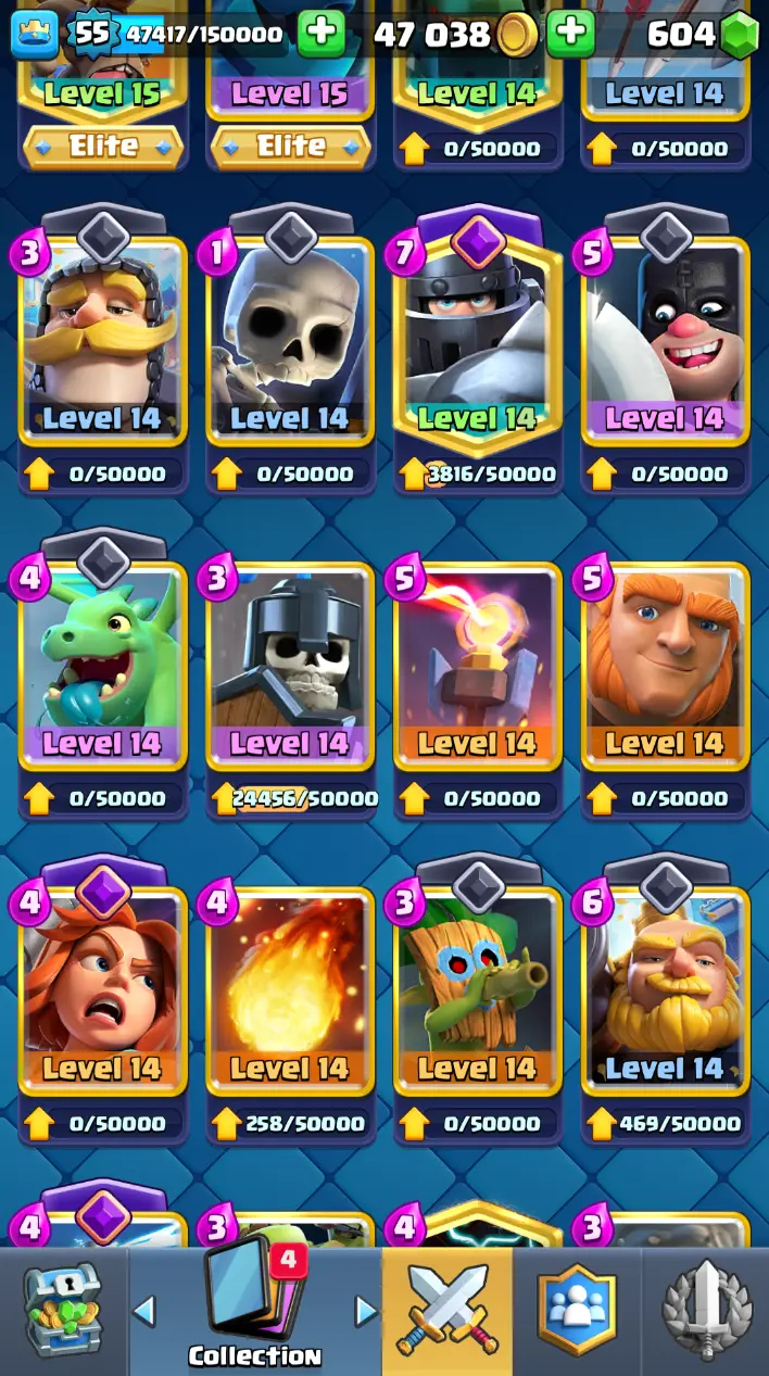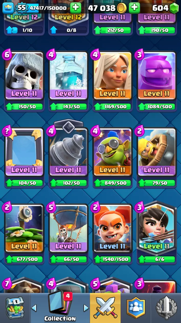 ◀️ KT 15 ▶️ LEVEL 55 🤩 9021 TROPHIES 🏆 6 ELITE CARD 🙀 33 MAX CARD 😎 7 EVO ☠️ 95 EMOTE 😍 6 SKIN 👽 121 CARDS 💳 47k GOLD 💰 604 GEMS 💎 RL88