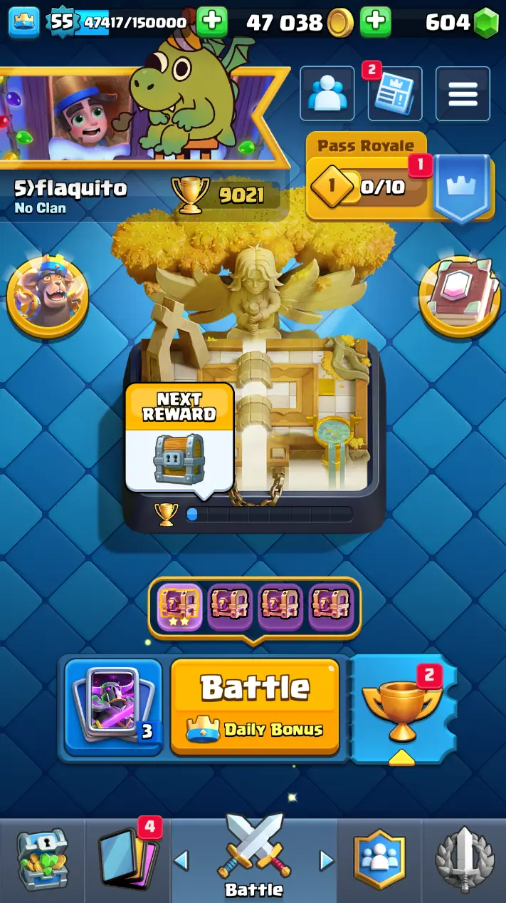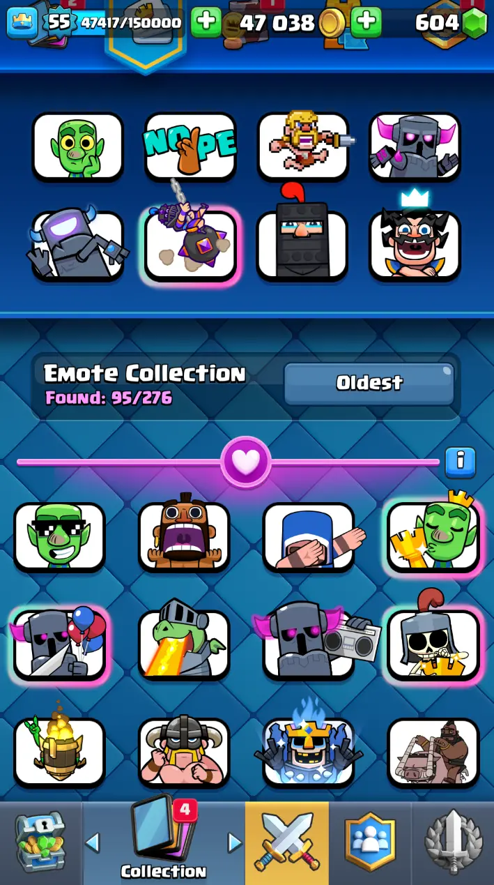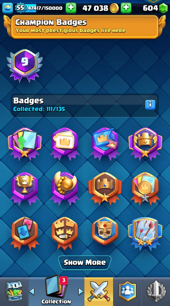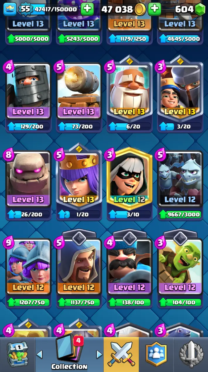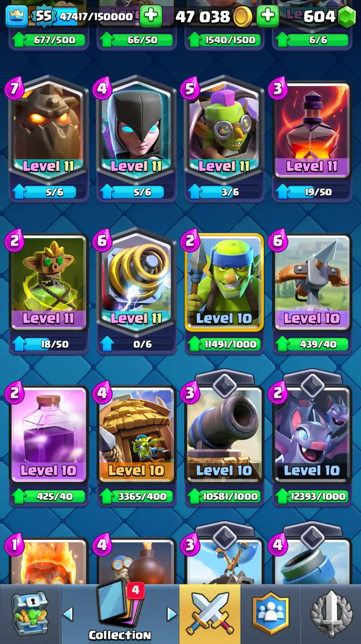 ◀️ KT 15 ▶️ LEVEL 55 🤩 9021 TROPHIES 🏆 6 ELITE CARD 🙀 33 MAX CARD 😎 7 EVO ☠️ 95 EMOTE 😍 6 SKIN 👽 121 CARDS 💳 47k GOLD 💰 604 GEMS 💎 RL88