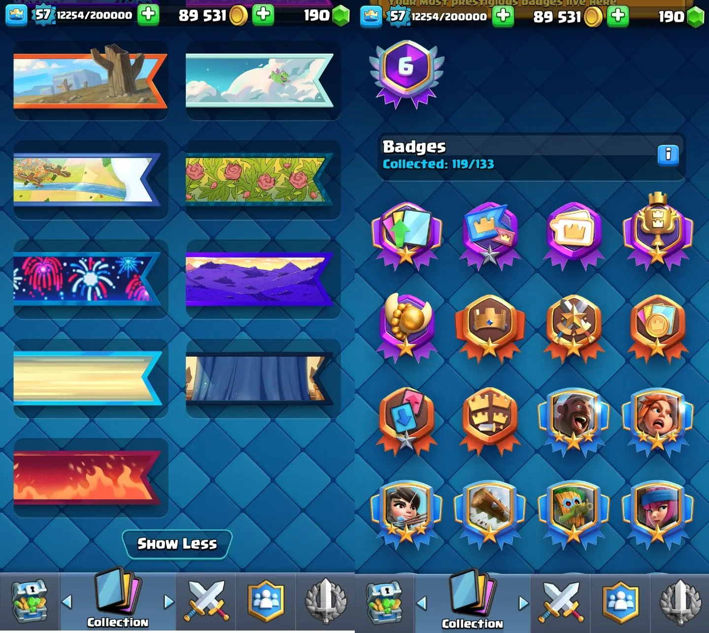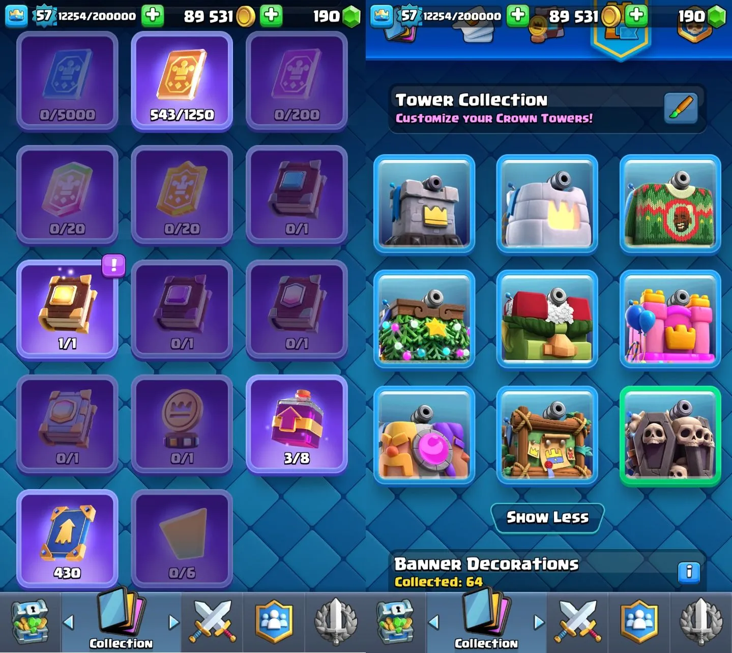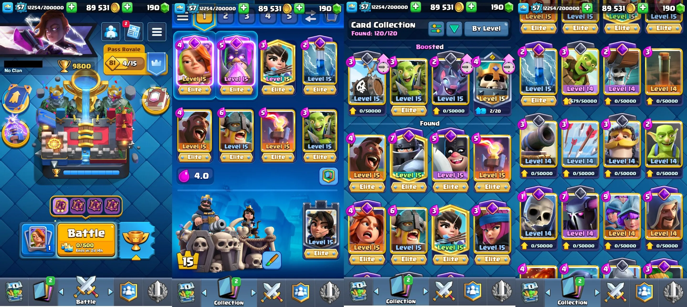 ◀️ KT 15 ▶️ LEVEL 57 🤩 9800 TROPHIES 🏆 10 ELITE CARD 🙀 58 MAX CARD 😎 12 EVO ☠️ 89 EMOTE 😍 8 SKIN 👽 120 CARDS 💳 89k GOLD 💰 190 GEMS 💎 RL26