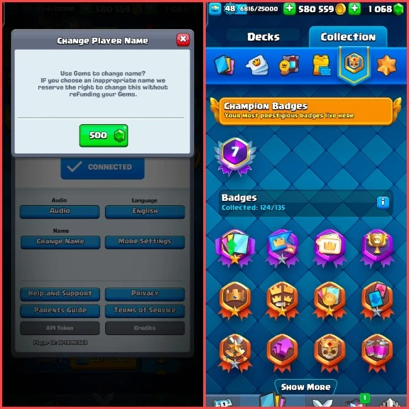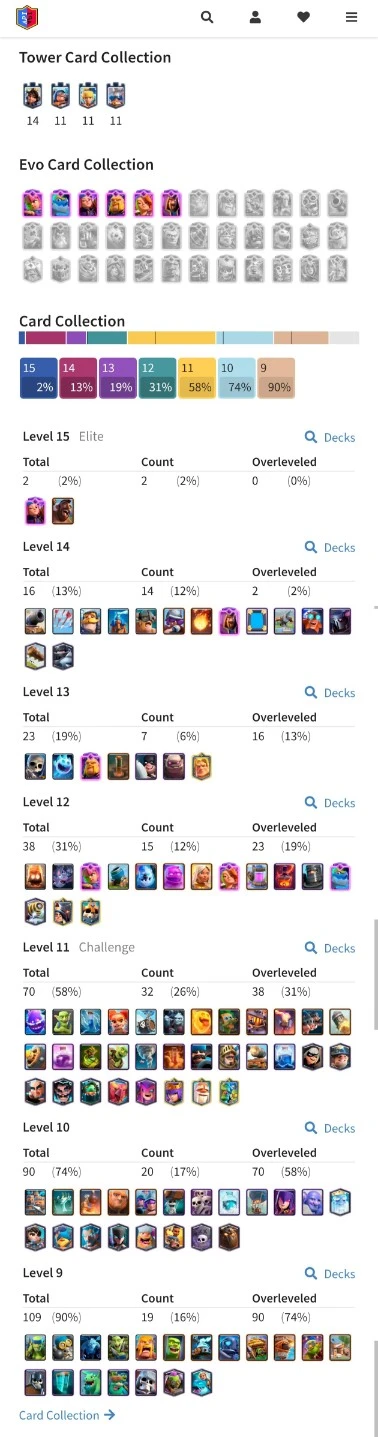 Level 48 : KT 14 *9163 Trophies* 580k Gold & 1k Gems {6 Evolution, 14 Cards Level 14 & 2 Level 15} NC Available, 7 Years Played | 68 Nice Emotes CH372