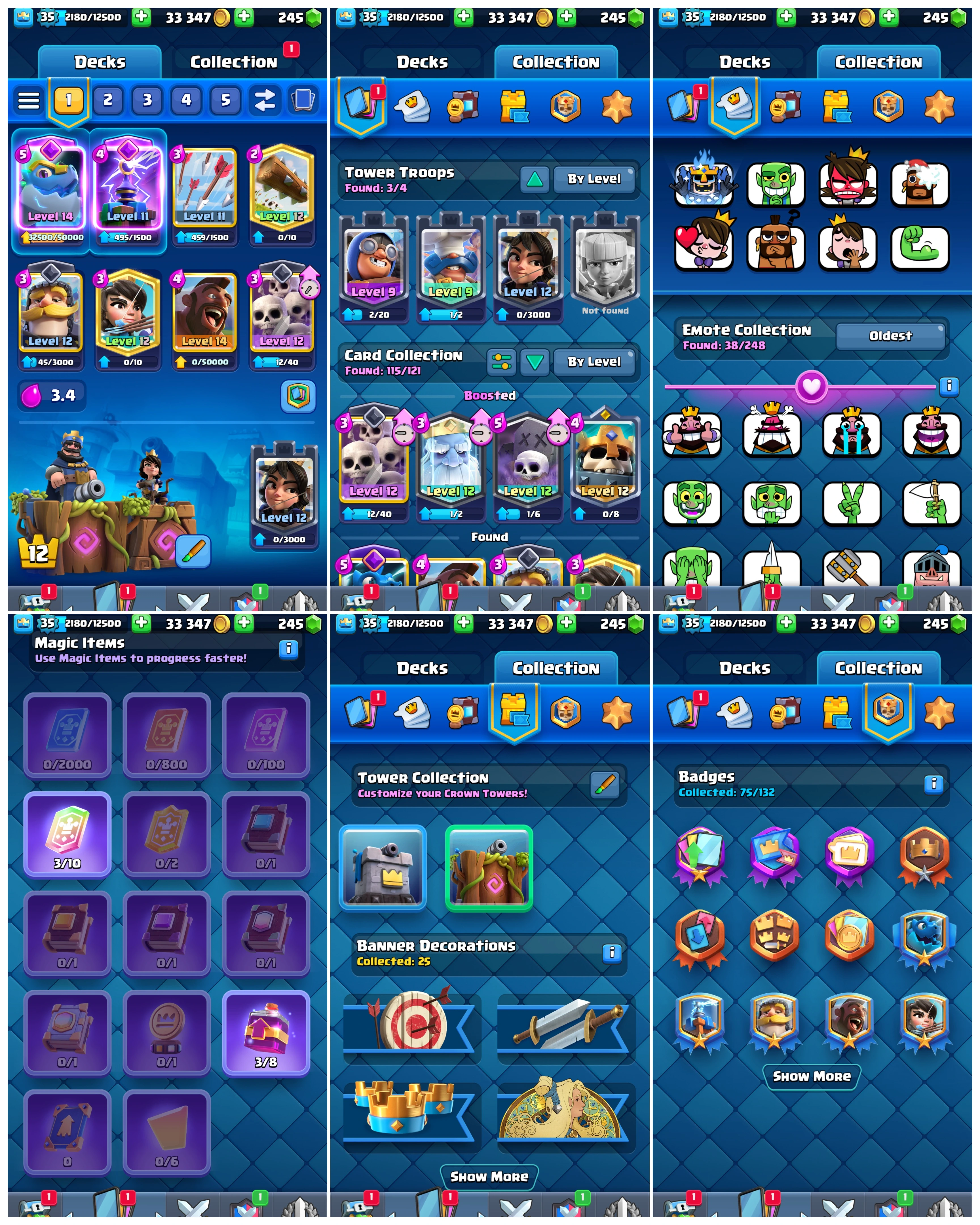🤑 Pocket-Friendly Deal 🌟 7359 Trophies 🏆 | Level 35 🔥 | King Tower 12 👑 | Arena 19 ⚔️ | Emote 38 😎 Cards 115 🔥 Instant Delivery ✅ Lifetime Access ✅ | #P676