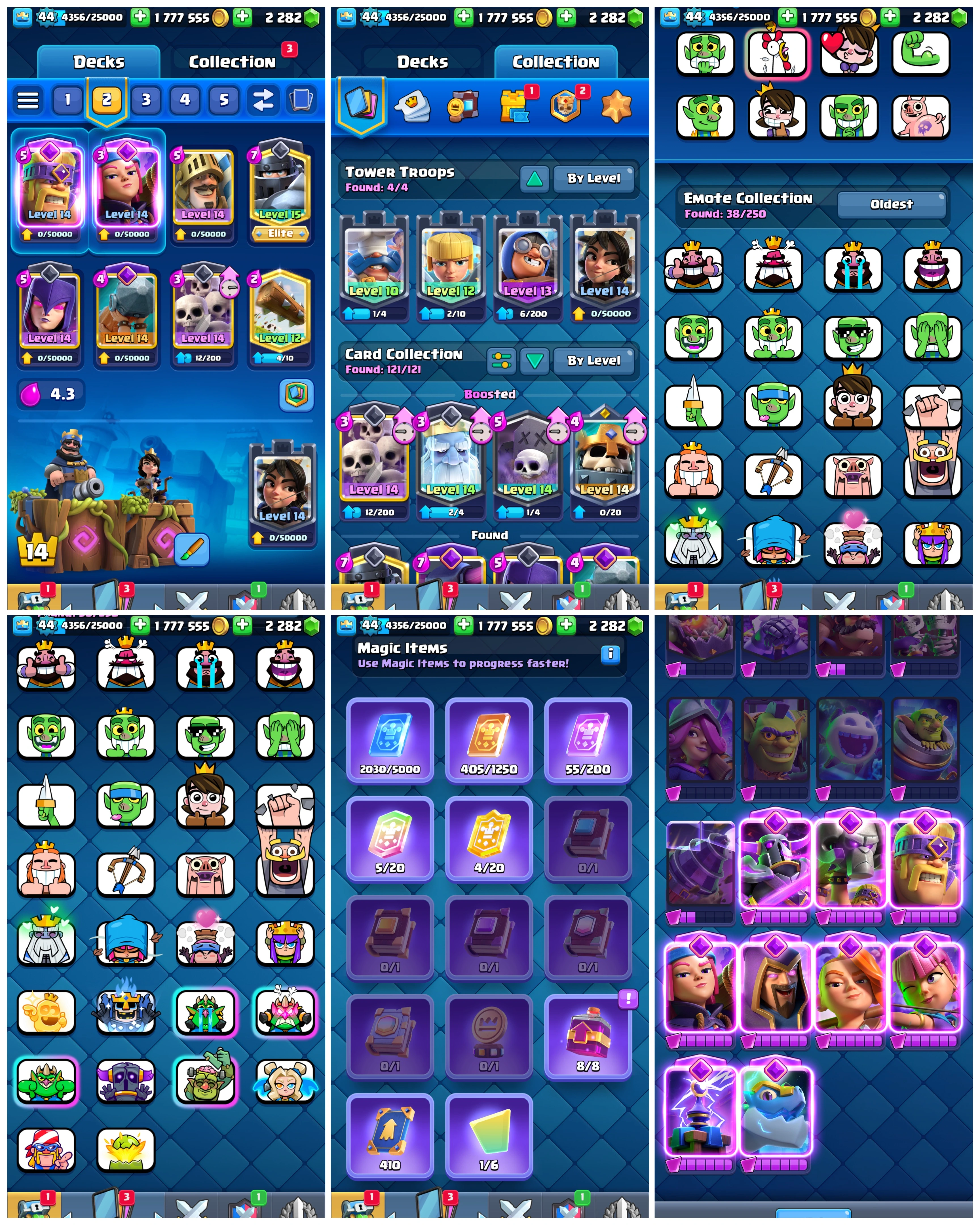🏆 Push Rank Instantly 🌟 8760 Trophies 🏆| Level 44 🔥 | King Tower 14 👑 | Arena 22 ⚔️ | Emote 38 😎 Cards 121 🚀 Instant Delivery 🚀 Lifetime Access ✅ | #P725