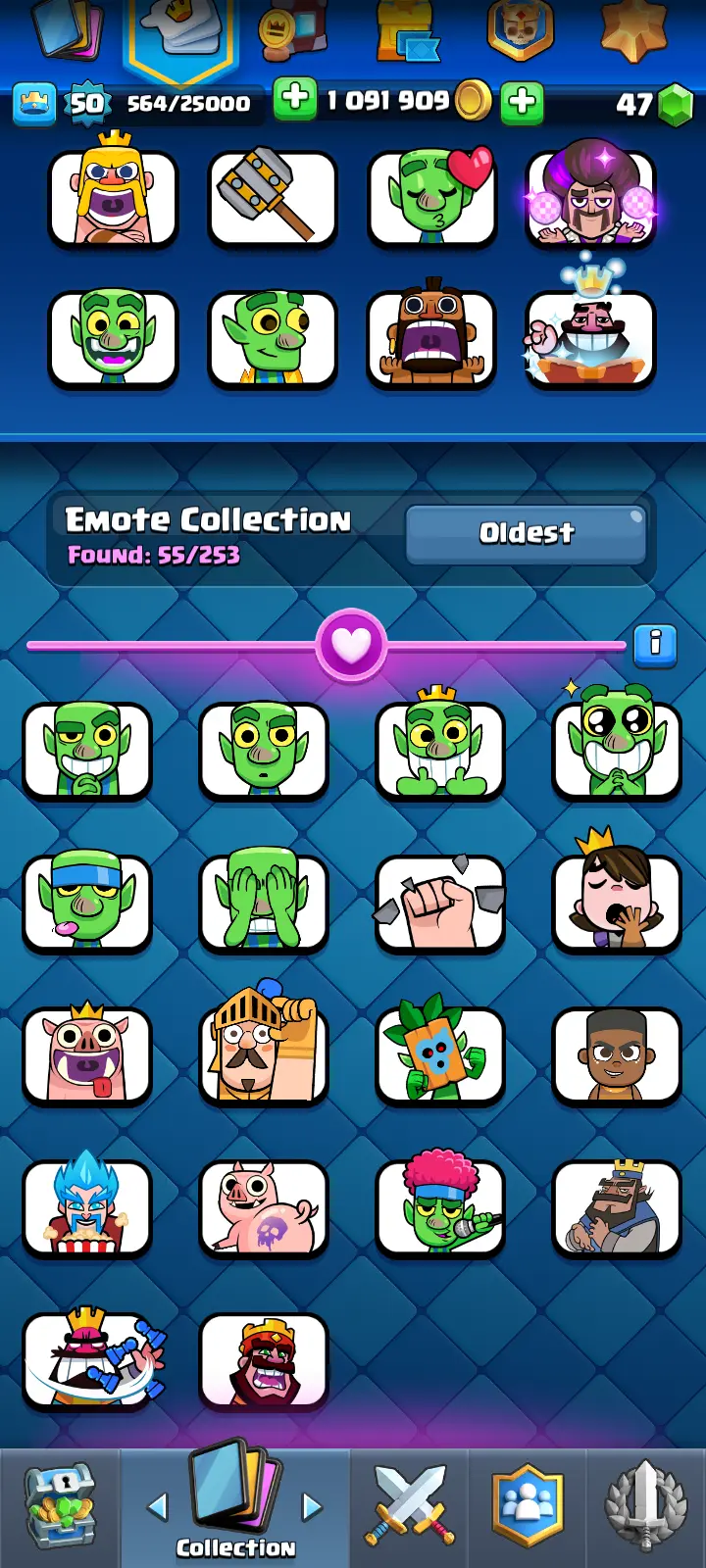 RARE GOBLIN KISS EMOTE | 7 YEARS PLAYED BADGE🔥 LVL 50 🏆 9.1K+ TROPHIES 👾 10 EVOS [ 4 SHARDS ] ☠ 8 MAX CARDS [ 3 ELITES + 37K ELITE CARDS ] 🤝 SAFEST AND INSTANT DELIVERY!