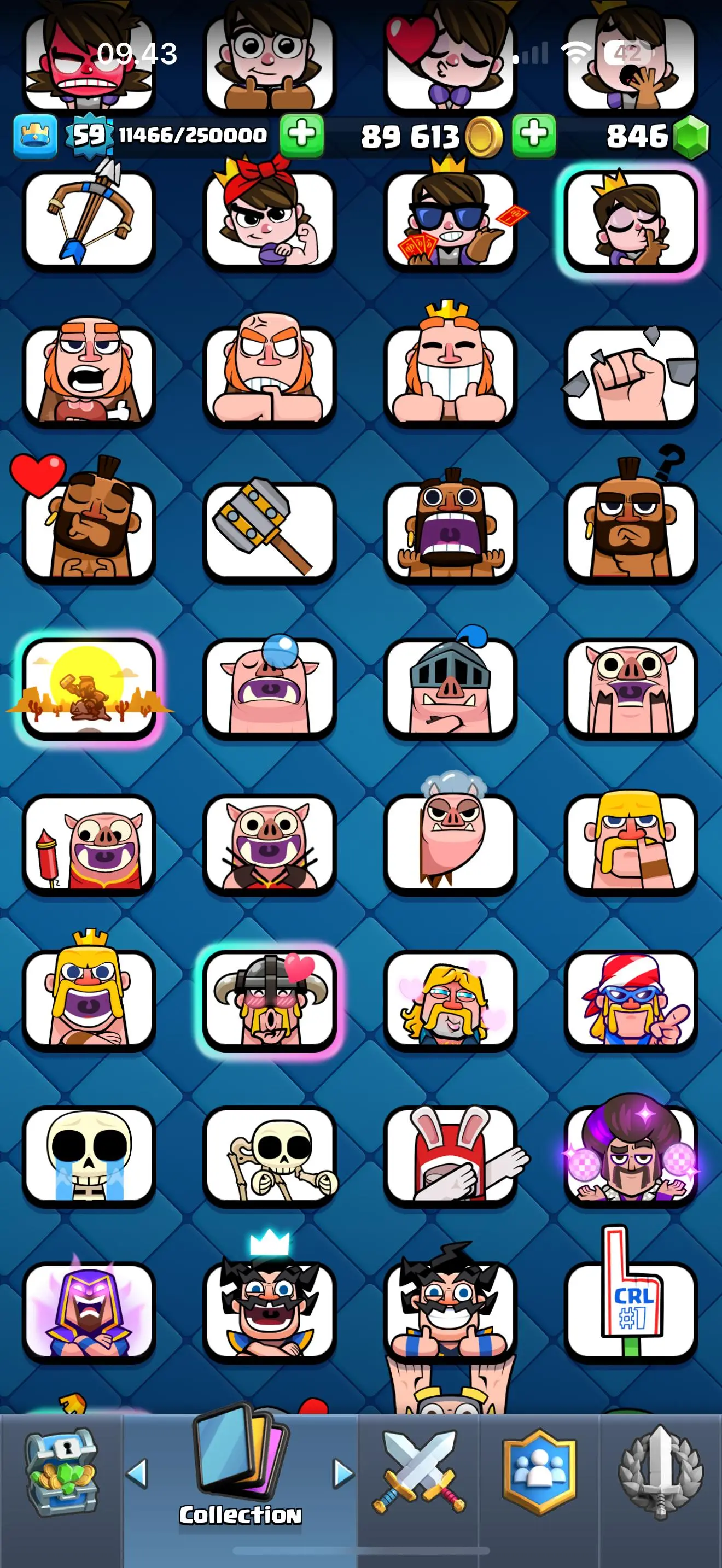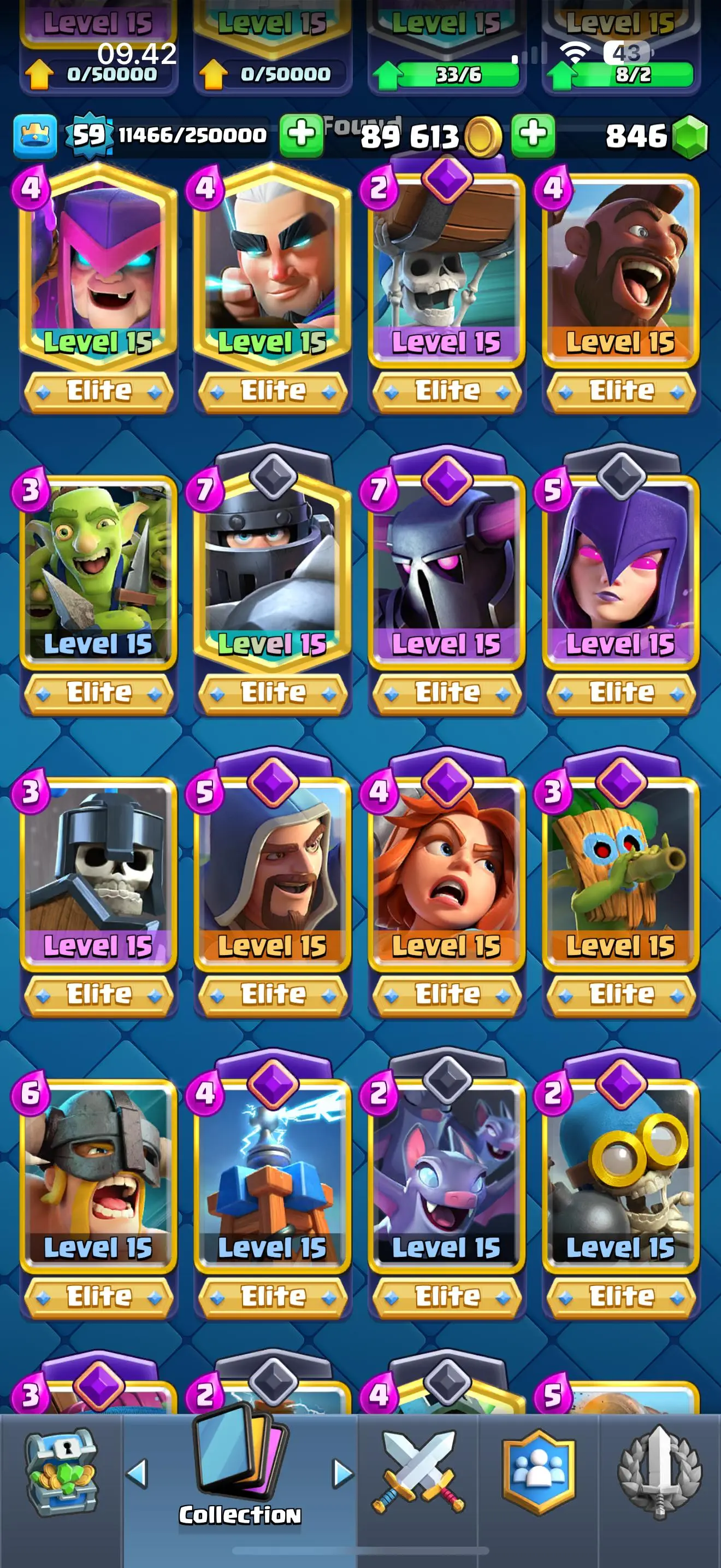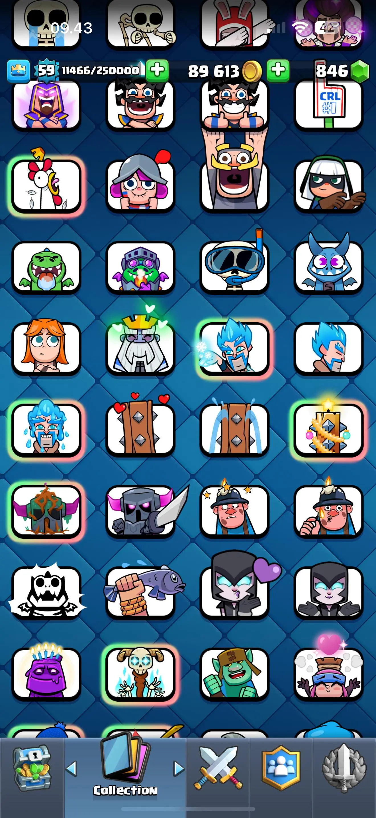 RARE🔥KT 15☠️11 evolution cards☠️18 elite cards☠️67 max cards🏆653 top ladder✅rare emotes✅safe and guaranted