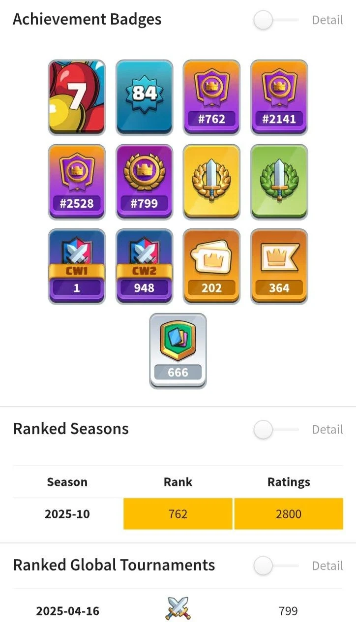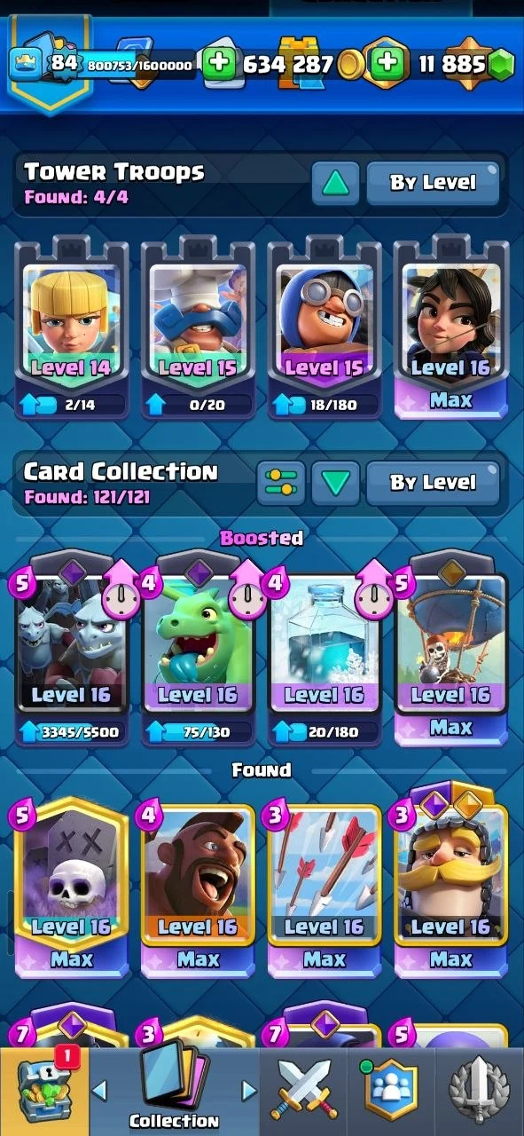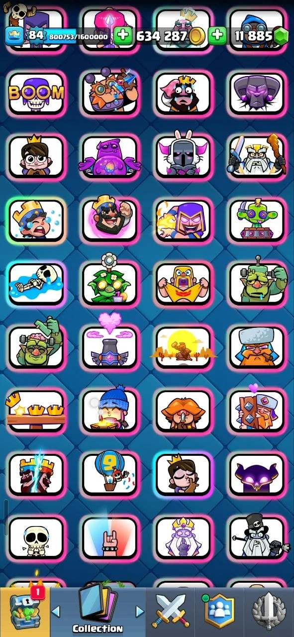🌸 (RAREST) 55 MAX CARDS (LEVEL 16) 💎 GLOBAL TOURNAMENT RANK 799 💪 ULTIMATE CHAMPION RANK 762, 2141 & 2528 🌟 KT 16 🍓 36 EVOLUTIONS & 7 HEROES ❄️ 84 XP 🎯 11800 GEMS 💎 RARE EMOTES ✨️ 13500 TROPHIES 🏆 100 ELITE CARDS 🏅 INSTANT DELIVERY 🚚