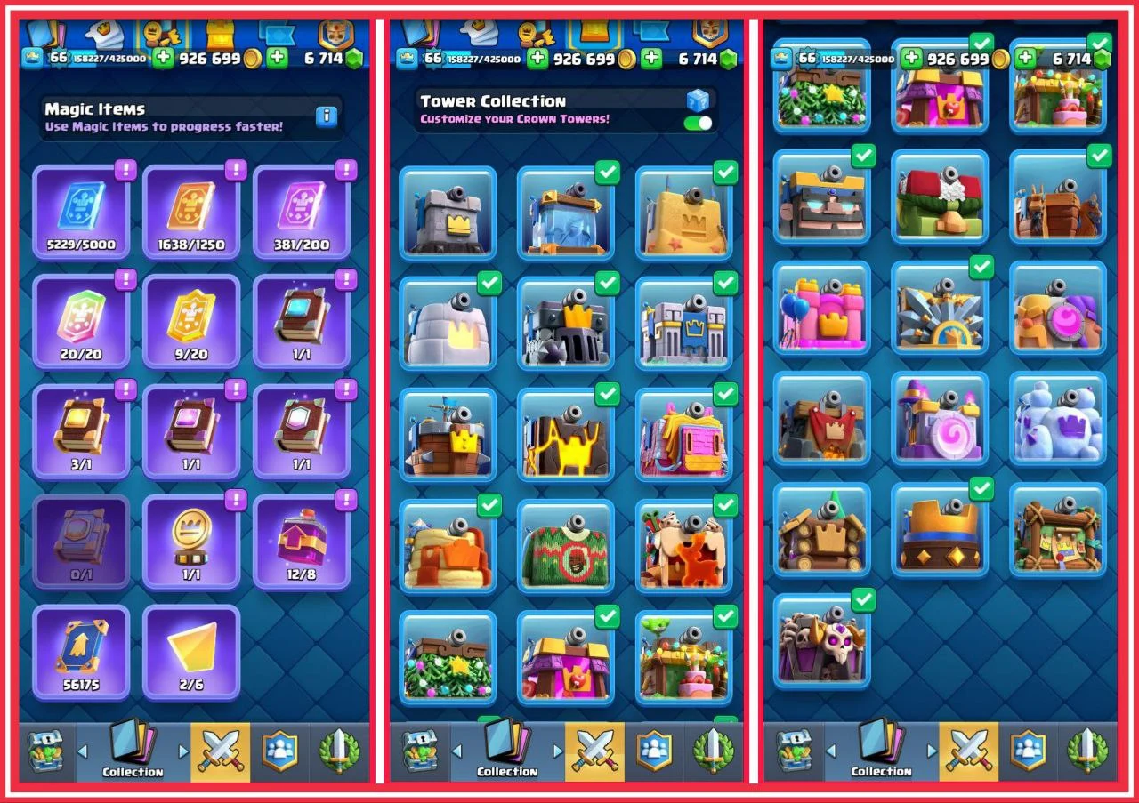 ✨️ RAREST CRL 20 WIN EMOTE 💎 FULLY MAXED OUT ❄️ CHAMPION KING 👑 LNY HOG 💰 FIGHTING FISH 🐟 BOMBERLOON 💣 EMPEROR KING 🌟 ANNIVERSARY HEALER 🐧 55 ELITE CARDS ☄️ 66 XP 🎯 16 EVOLVED 😈 27 TOWER SKINS 🔥 MAGIC ITEMS LOADED 🌙 CRL BADGES 🏅 GLOBAL TOURNAMENT 726 🏆