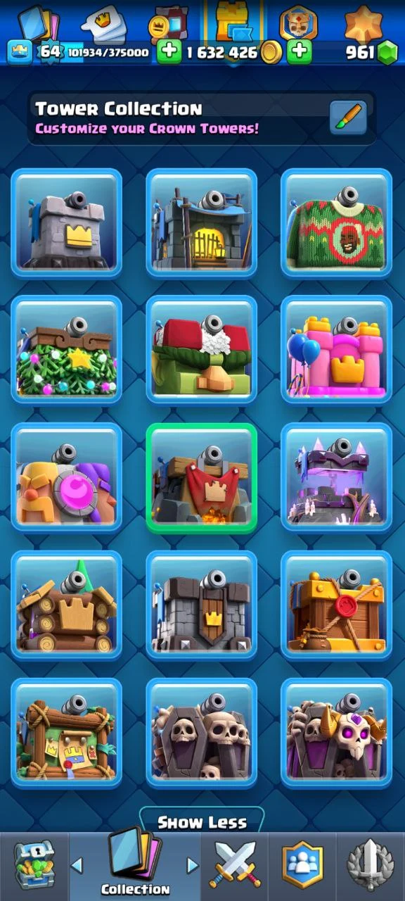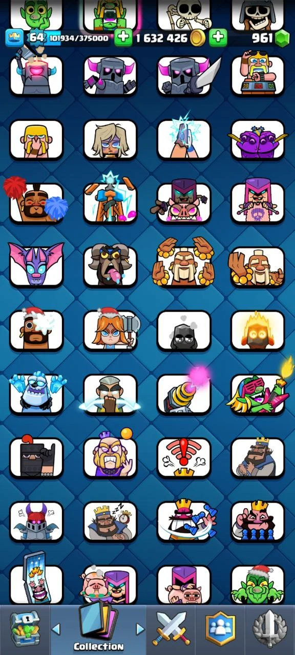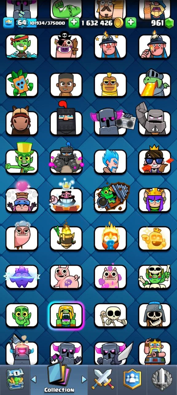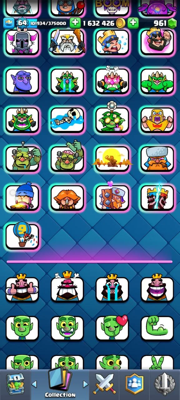 (✨RAREST KT 15 MAXED ACCOUNT [ 21 EVOLUTIONS ] 🔥 GOBLIN EMOTES 🎃 , ✅ HOG EMOTE ✨ | 👑 111 MAX CARDS 👑 | 🎃ALL 120 CARDS🎃 |💪 MAGIC ITEMS AVAILABLE 🗿KING TOWER 15 |🏆 9768 TROPHIES🏆