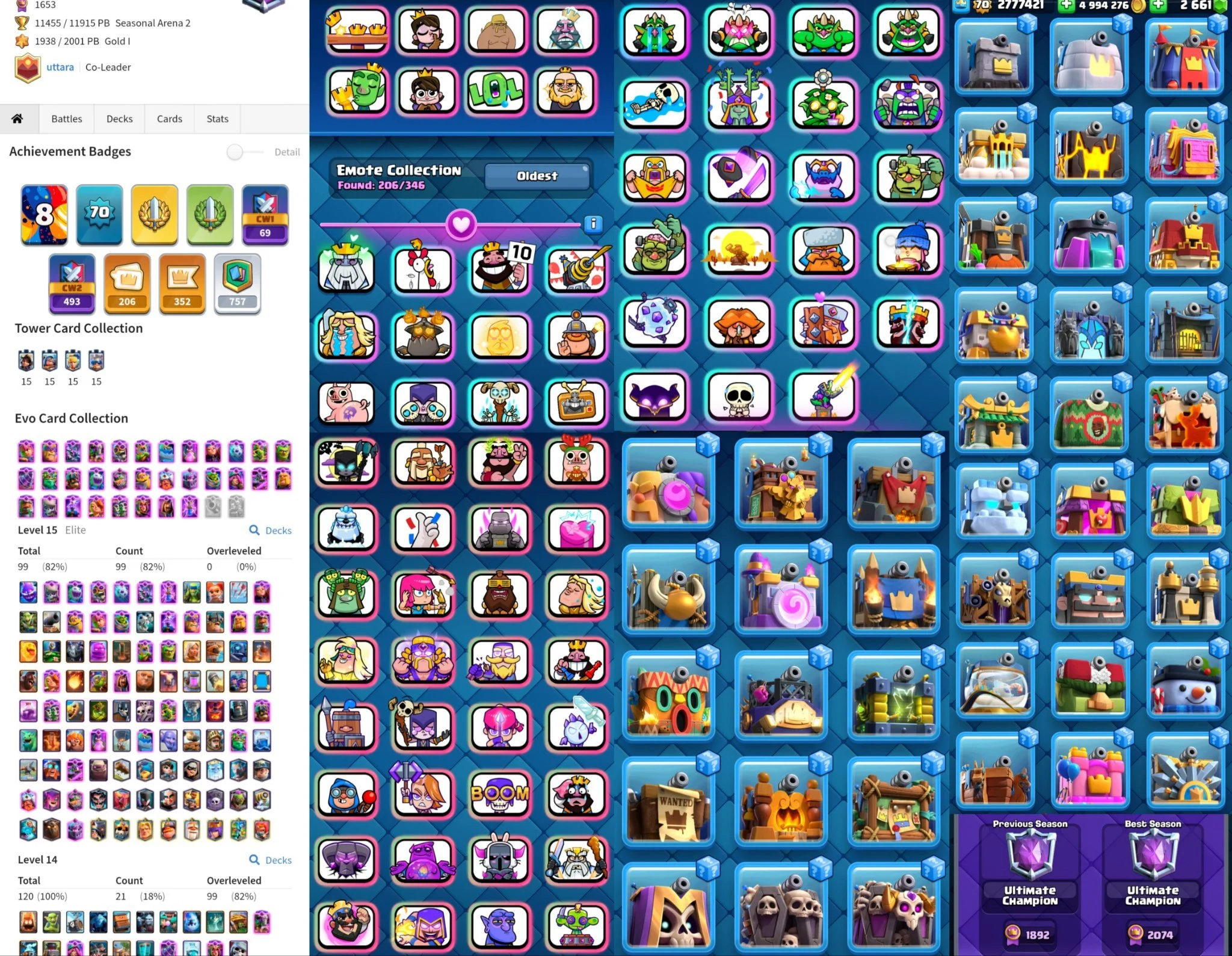 XP 70 🏮 32 Evo Max 🏮 120 Card Max 🏮100 Elite Max]🏮 [45 Tower]🏮 Gobling Kissing Trophy 🏮8 Years Badge 🏮 5 M Coin 🏮Ultimate Champion 🏮[05]🏮
