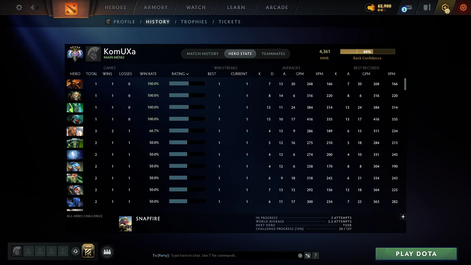 4361 MMR ⸱ Ancient ⸱ Fast search(Main pool) ⸱ 12000 behavior ⸱ 660 matches ⸱ Original email
