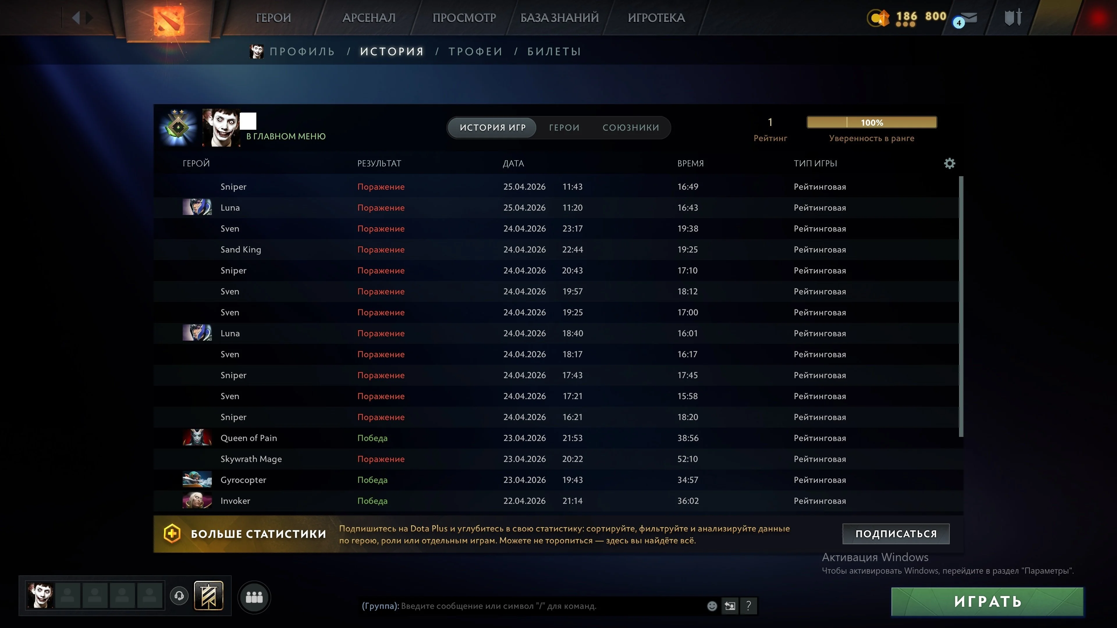 DO168//Dota 2 Account 1 MMR Calibrated Decency 10000 21 Trophy Level Native Mail