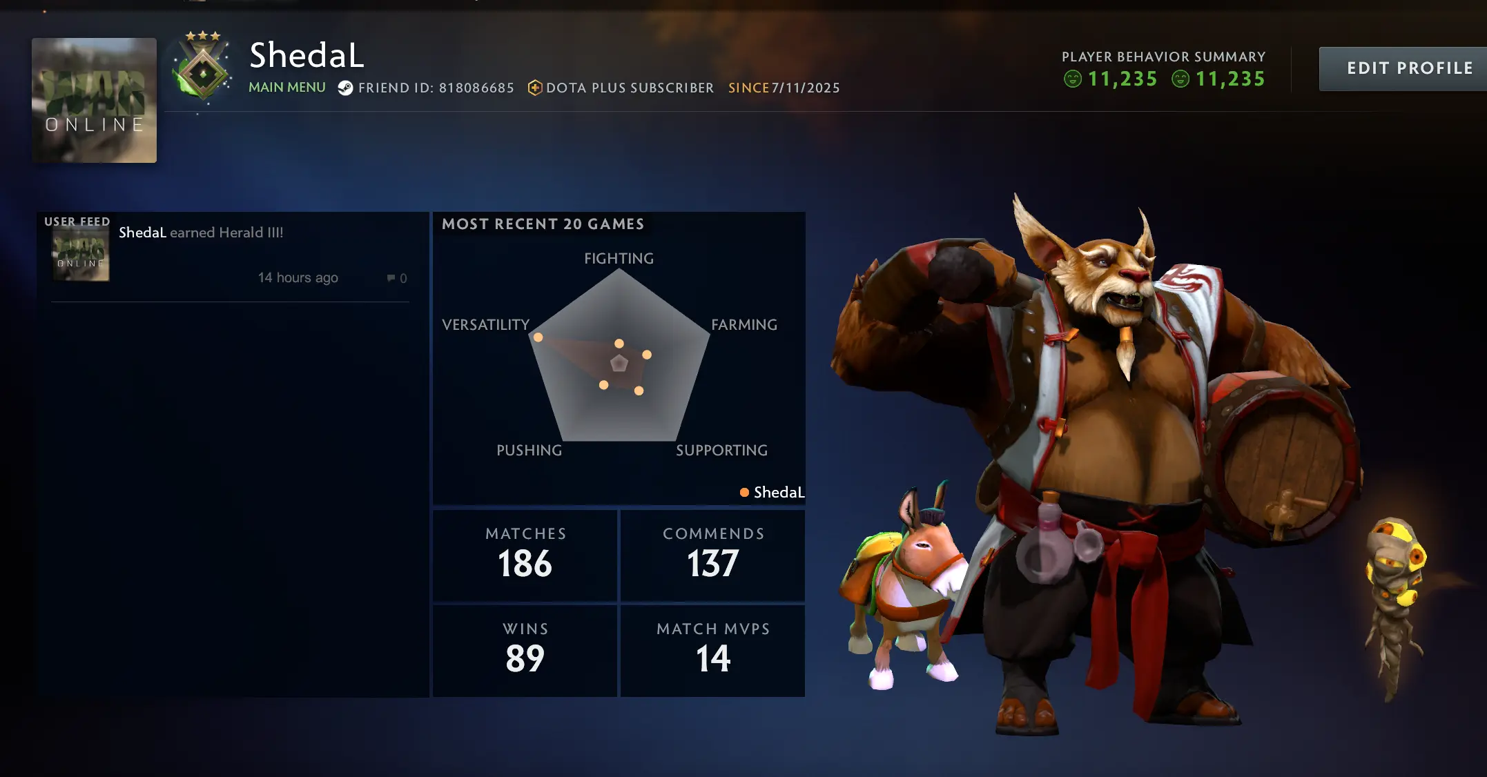 Herald 3🔥 242 MMR + 11235 Behavior 🔥 DOTA PLUS🔥