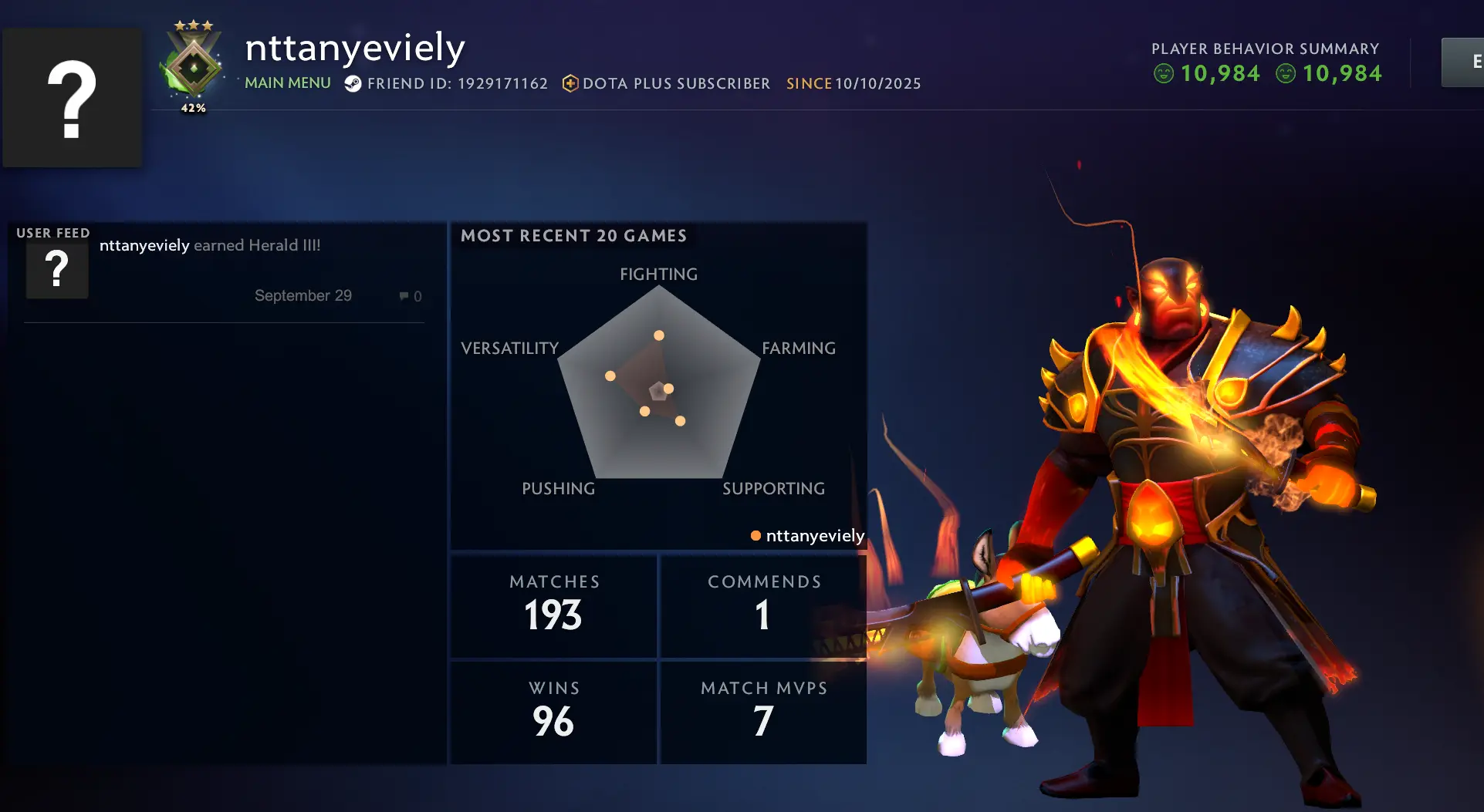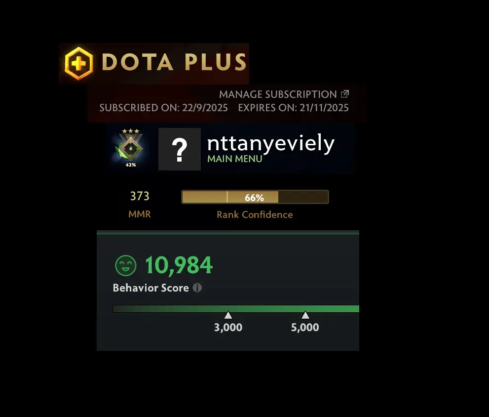 Herald 3 (42%) 🔥 373 MMR + 10984 Behavior 🔥 DOTA PLUS🔥