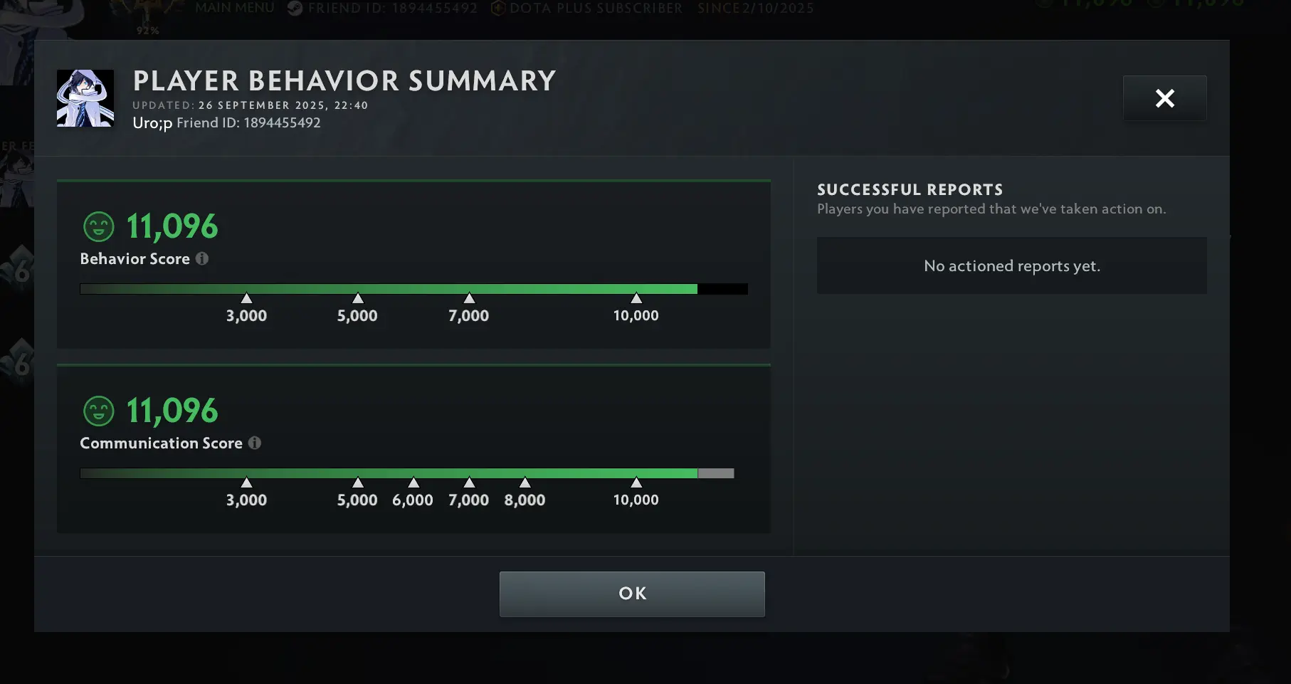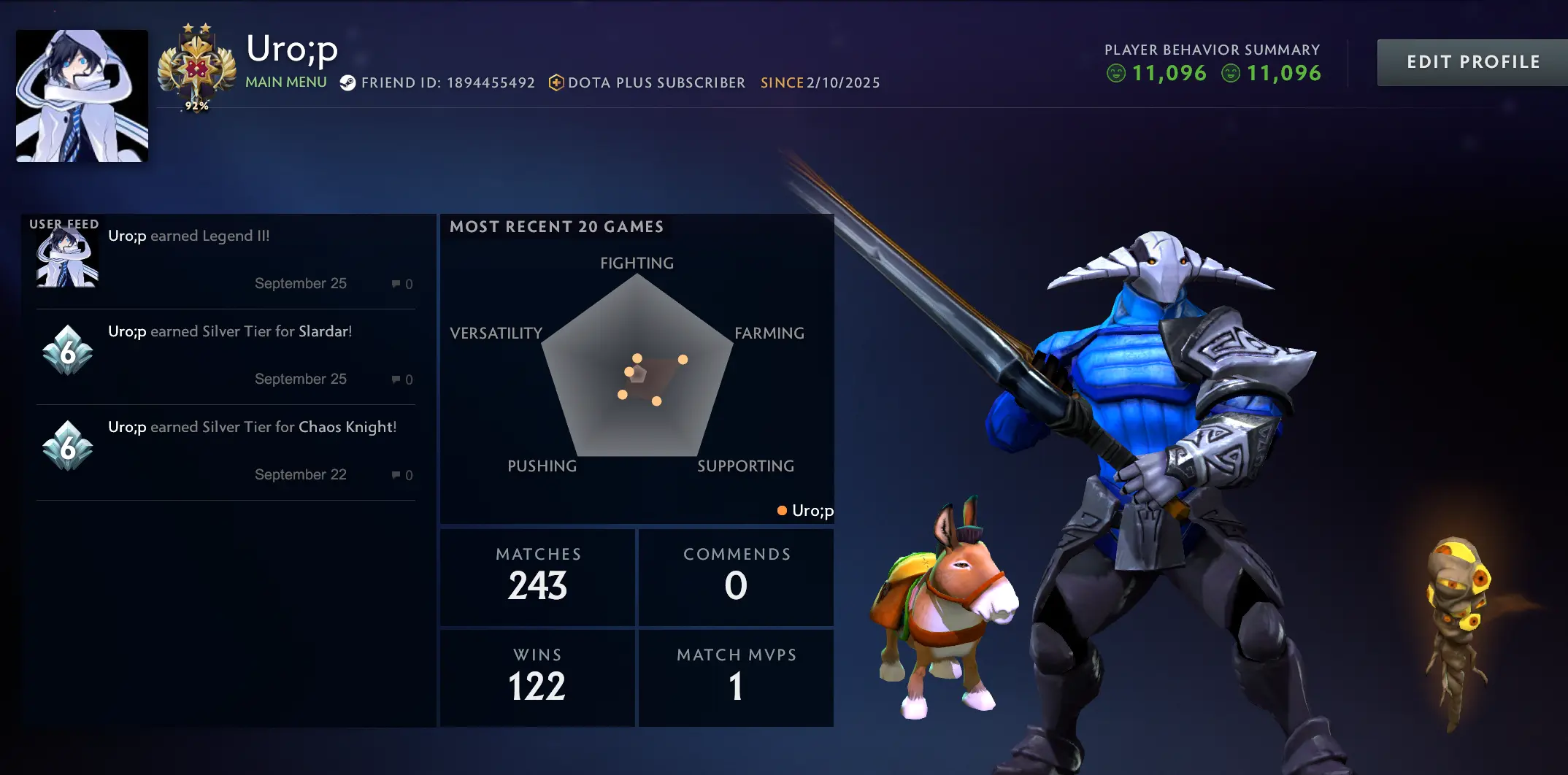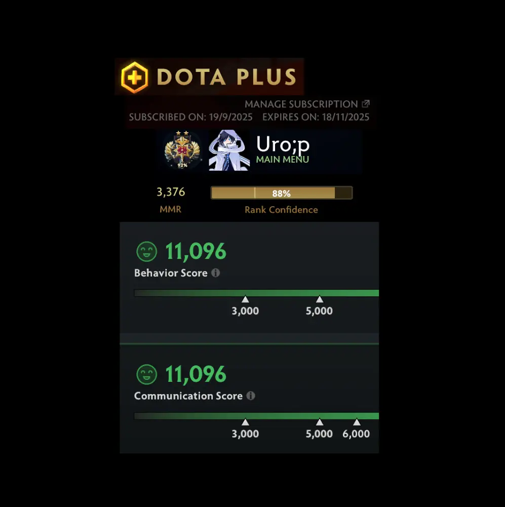 Legend 2 (92%) 🔥 3376 MMR + 11096 Behavior 🔥DOTA PLUS 🔥