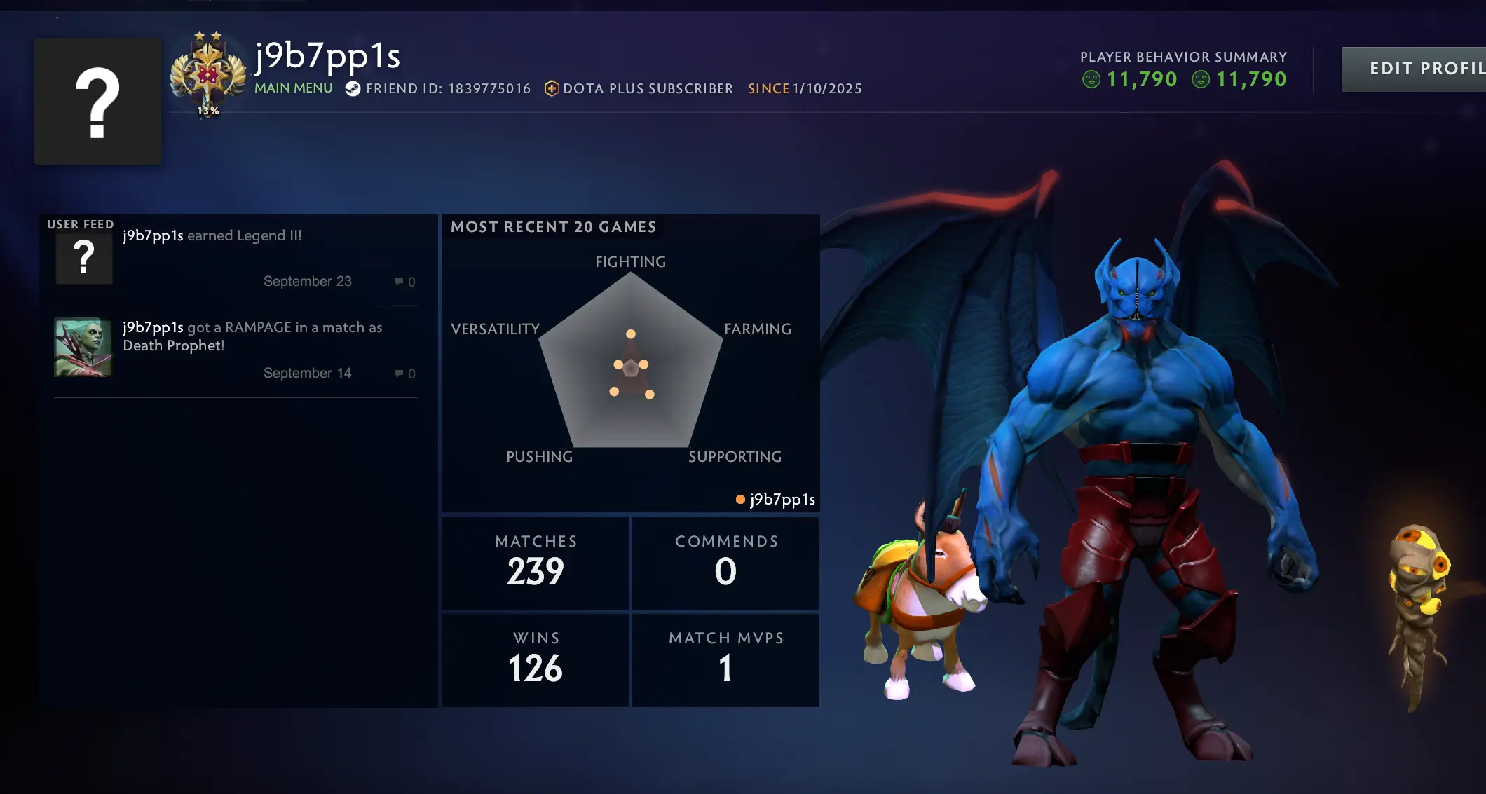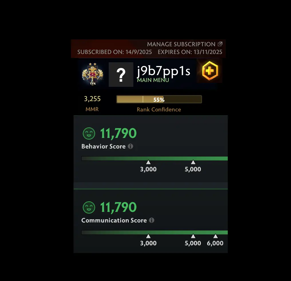 Legend 2(13%) 🔥3255 MMR 🔥 11790 Behavior 🔥 DOTA PLUS 🔥