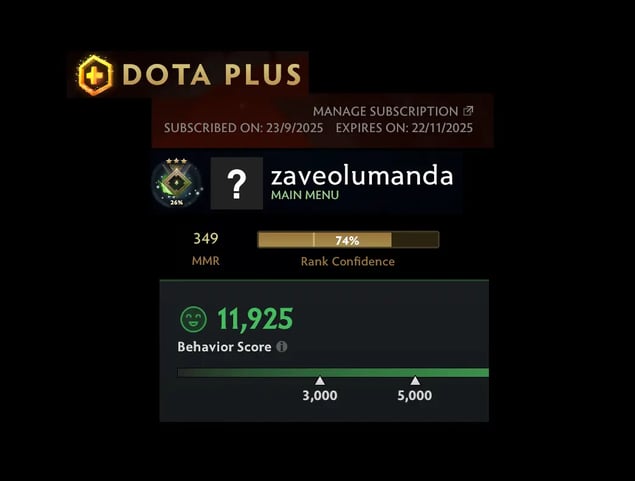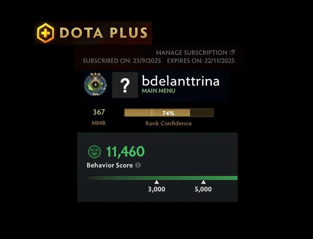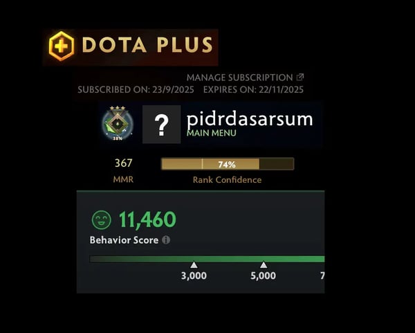 Legend 2 (92%) 🔥 3376 MMR + 11096 Behavior 🔥DOTA PLUS 🔥