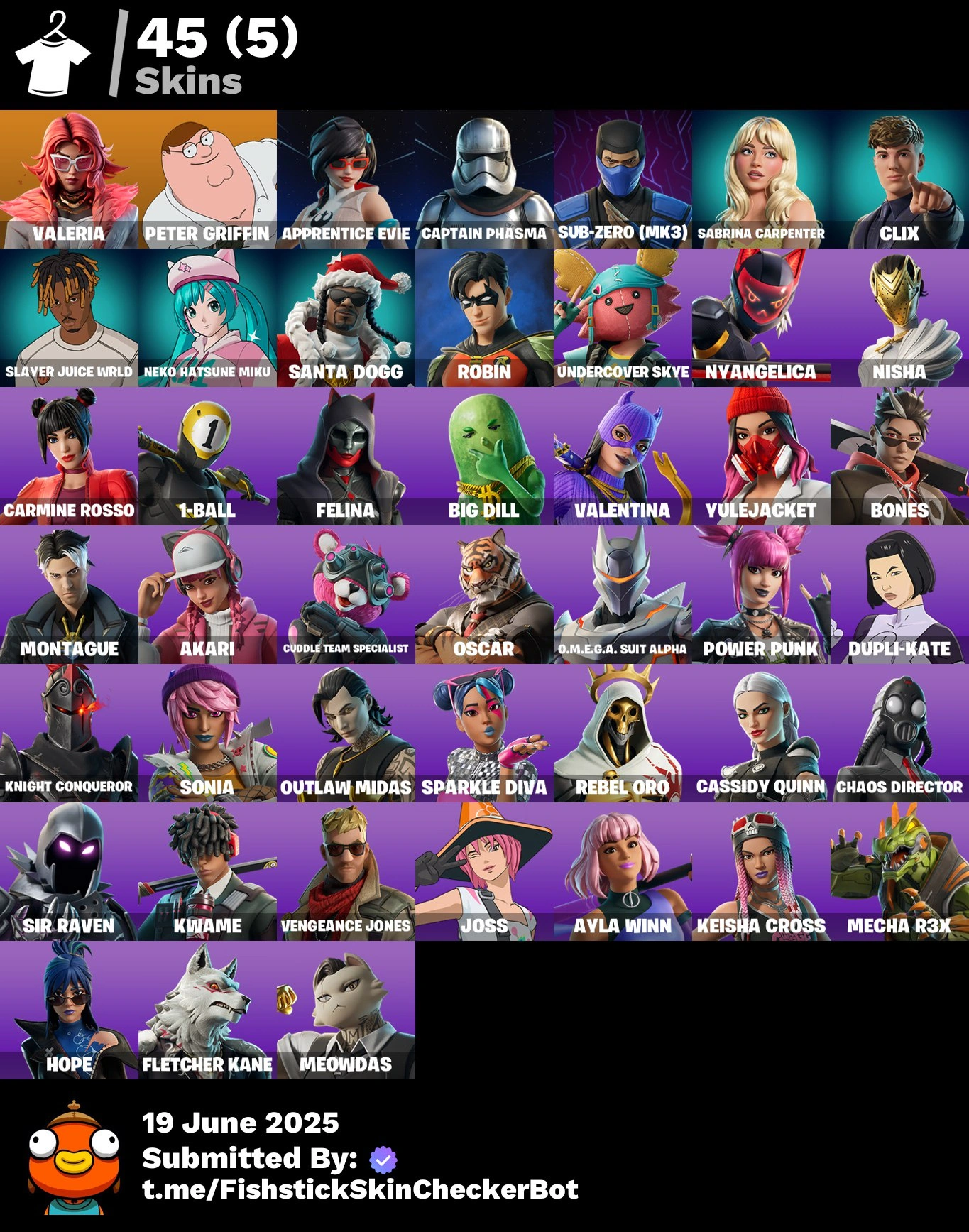 【PC/PSN/XBOX】45 Skins | Valeria | Peter Griffin | Captain Phasma | Apprentice Evie | Sub-Zero (MK3) | Neko Hatsune Miku | Santa Dogg | Sabrina Carpenter | 1100 VB | FS3