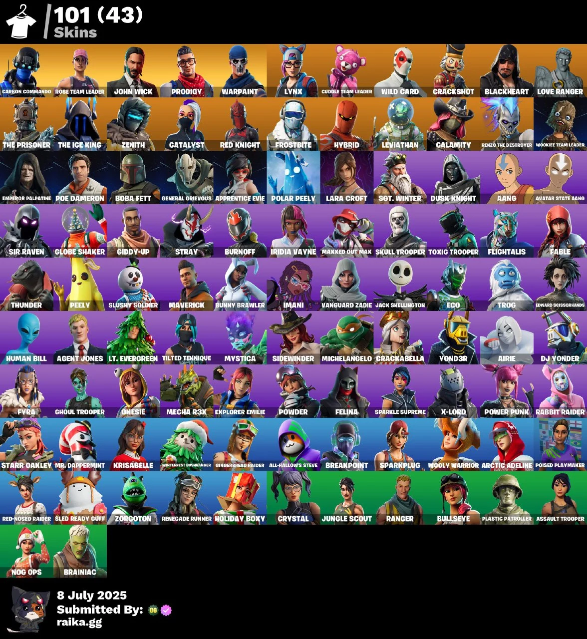 101 SKINS ⸱ OG STW, | OG STW | Candy Axe | John Wick | Breakpoint | Carbon Commando | Warpaint | Lara Croft | Rose Team Leader | Ice King Gold | Lynx | Red Knight | Ghoul Trooper | Skull Trooper