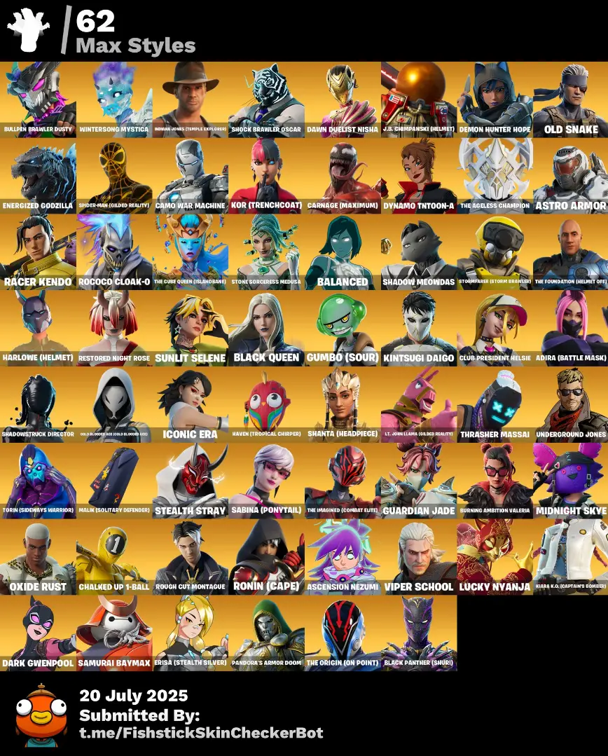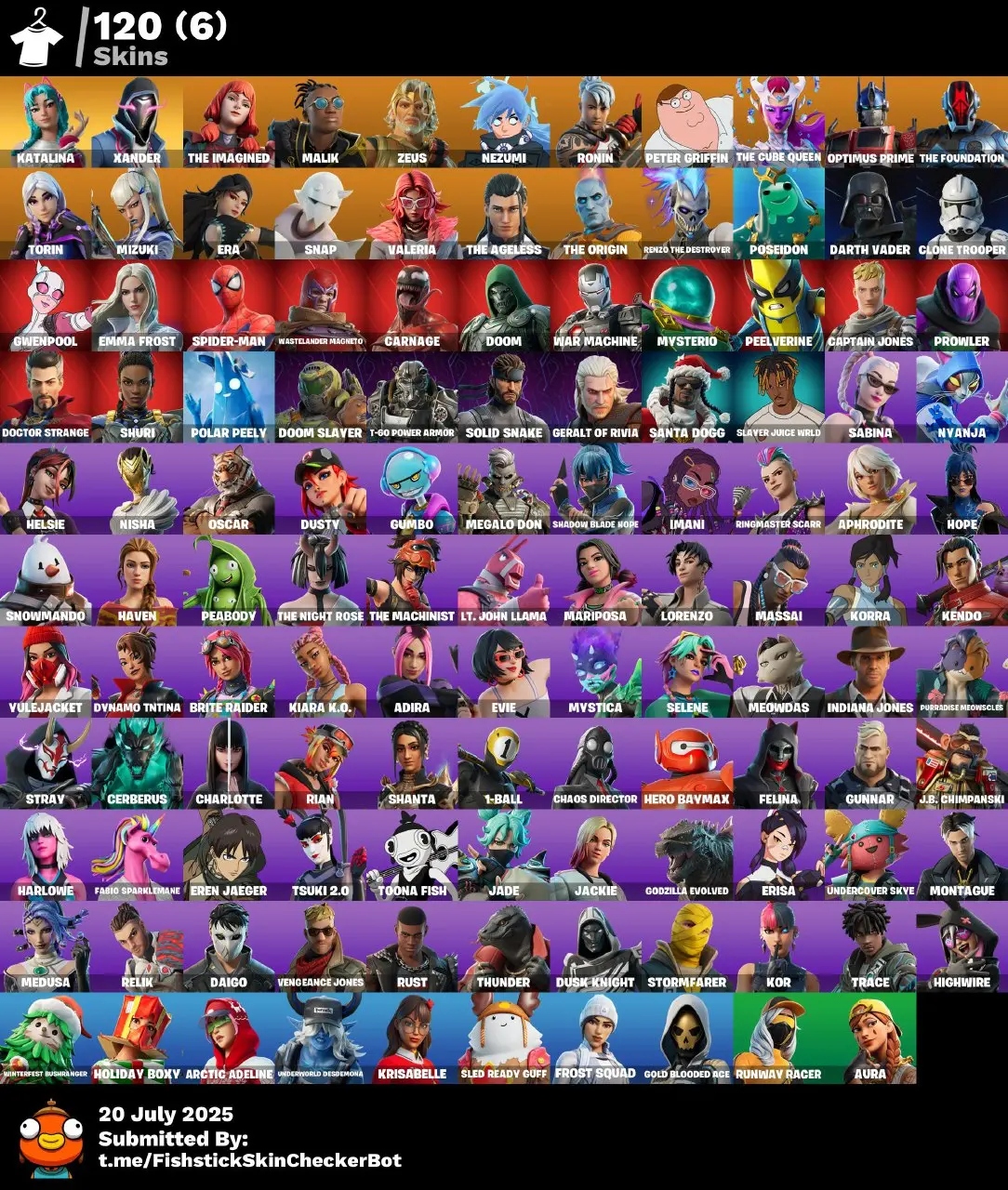 💫120 skins 🎮 [PC/PSN/XBOX] 🦊 Peter Griffin 🌈 The Cube Queen ⚙️ Optimus Prime 💎 Katalina ⚔️ Zeus 🐉 Nezumi 🔮 Ronin 💰 2950 VBucks 🧿 FTN146