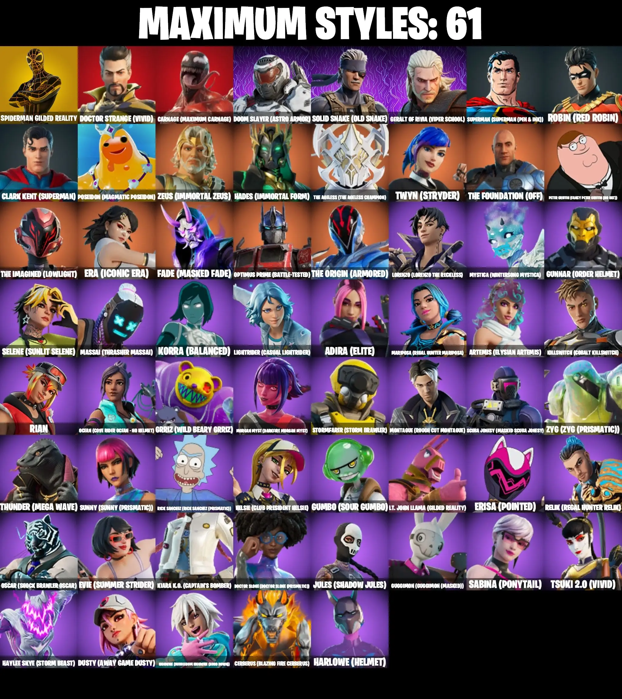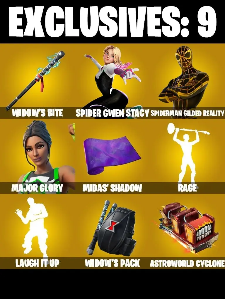 ❤️ 169 SKINS ❤️ BLACK WIDOW OUTFIT ❤️ YULE TROOPER ❤️ JOLTARA ❤️ GILDED SPIDER-MAN ❤️ SPIDER-GWEN STACY ❤️ GET GRIDDY ❤️ DARTH VADER ❤️ CHAMPION SIREN ❤️ LAUGH IT UP ❤️ DUMMY ❤️ ERA MAX ❤️ MYSTICA MAX ❤️ ARTEMIS MAX ❤️