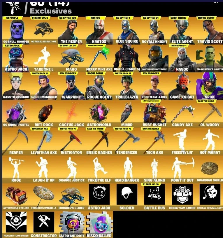 196 Skins Og Skull Trooper | OG aa1 | Kratos | Travis | Merry Mint & Levi Axe