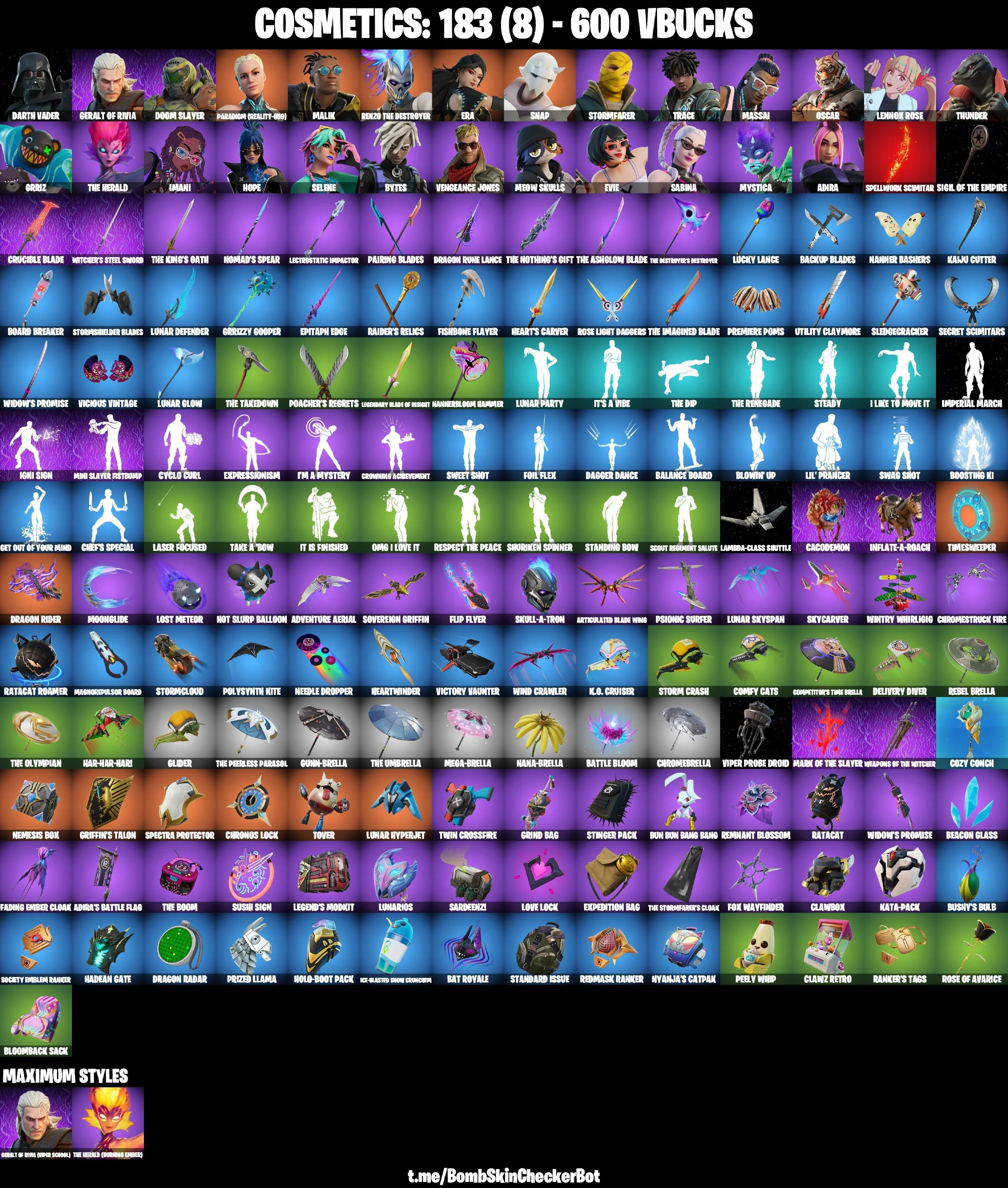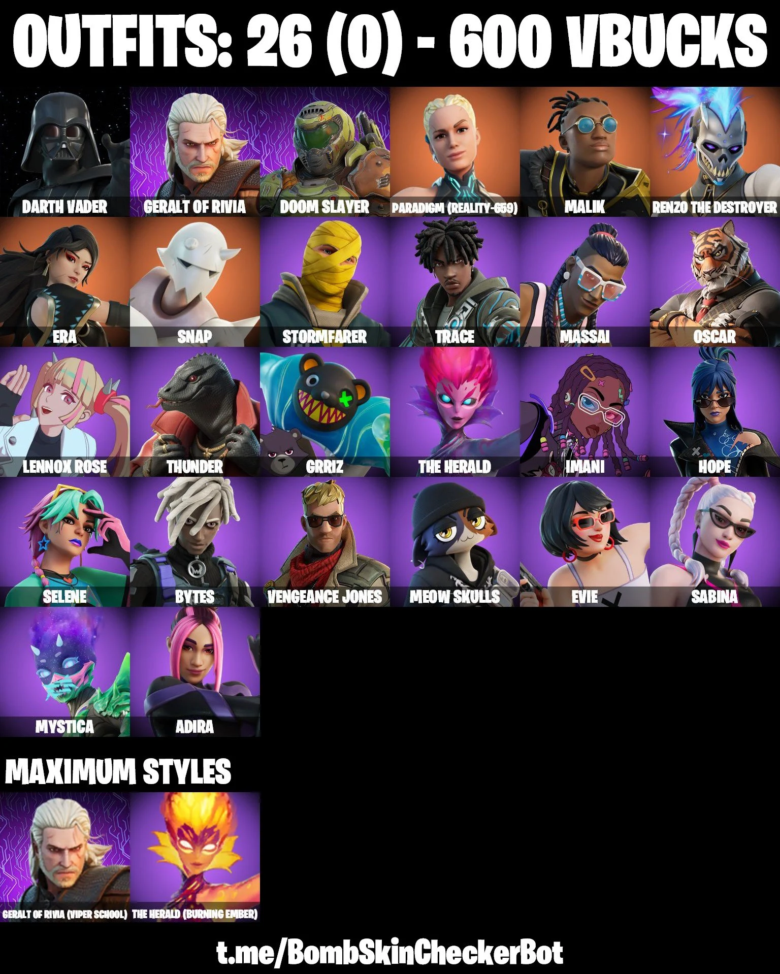 ✅26 Skins✅Darth Vader , Meow Skulls , Doom Slayer