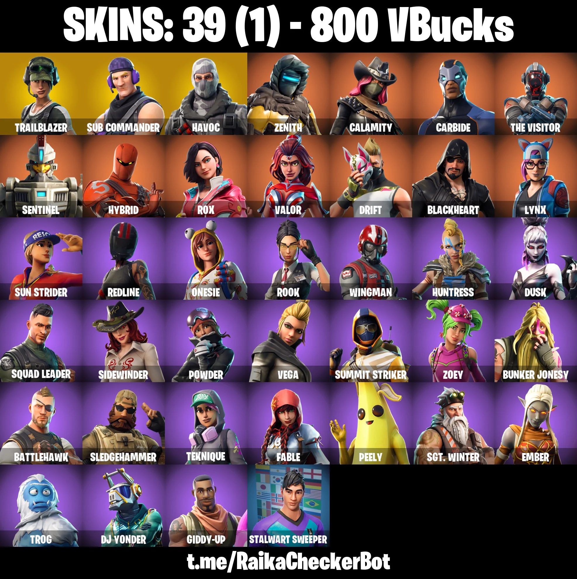 39 skins | 🔹 Trailblazer 🔹 Sub Commander 🔹 Havoc 🔹 Zenith 🔹 Calamity 🔹 Carbide 🔹 The Visitor 🔹 Sentinel 🔹 Hybrid 🔹 Rox 🔹 Valor 🔹 Drift | 🔹 800 VB PSN/XBOX/PC