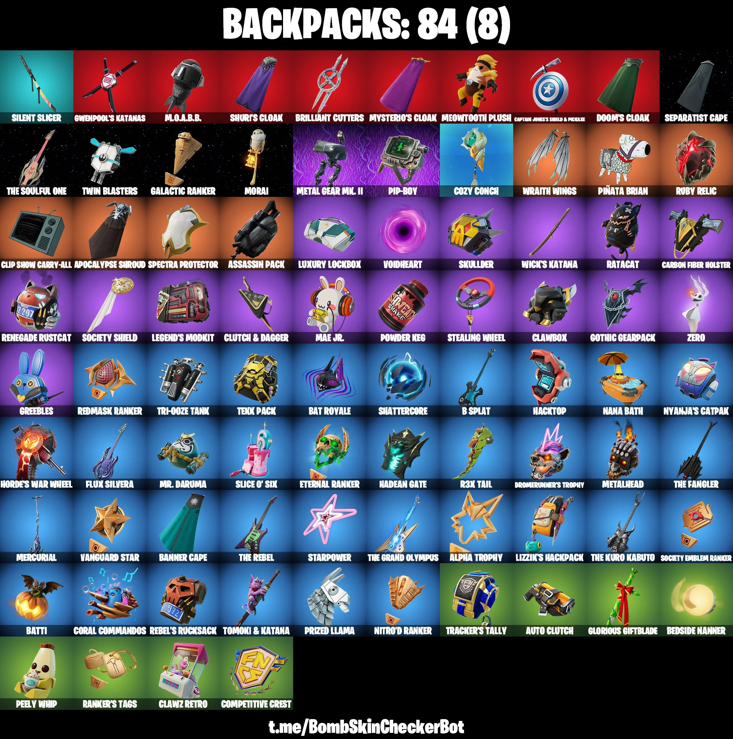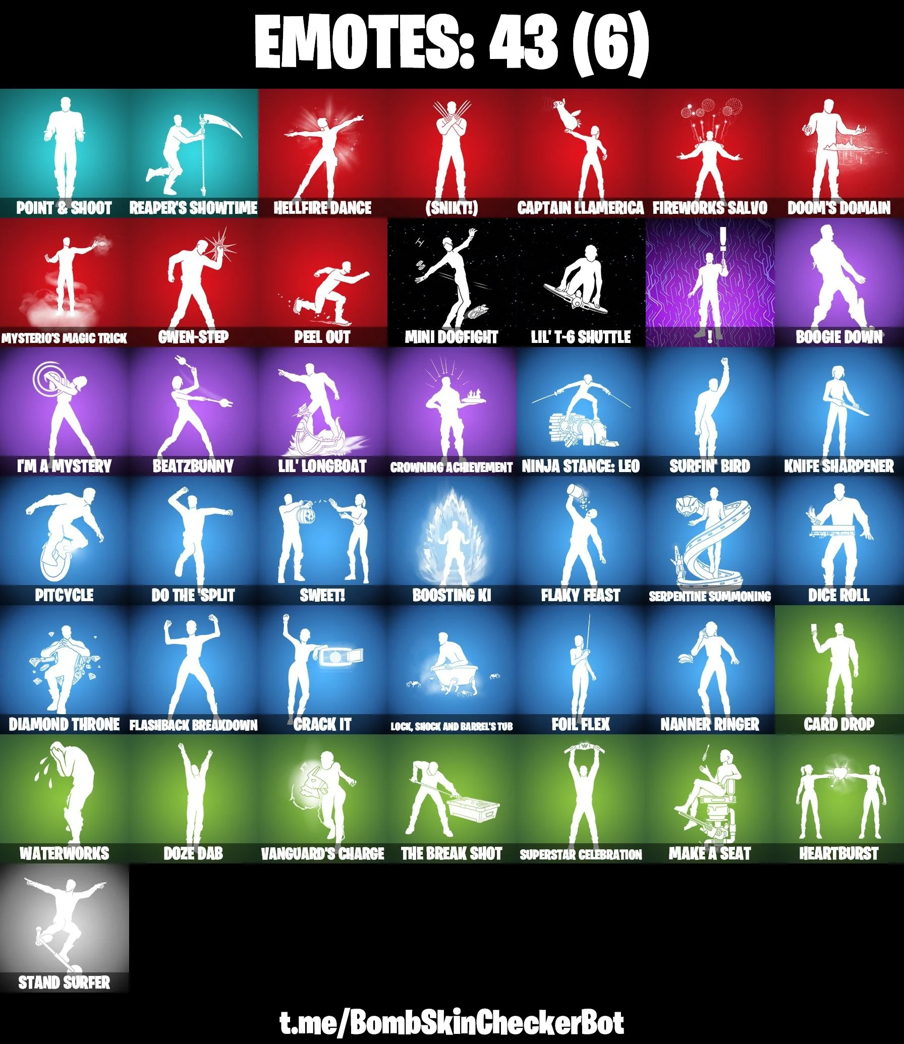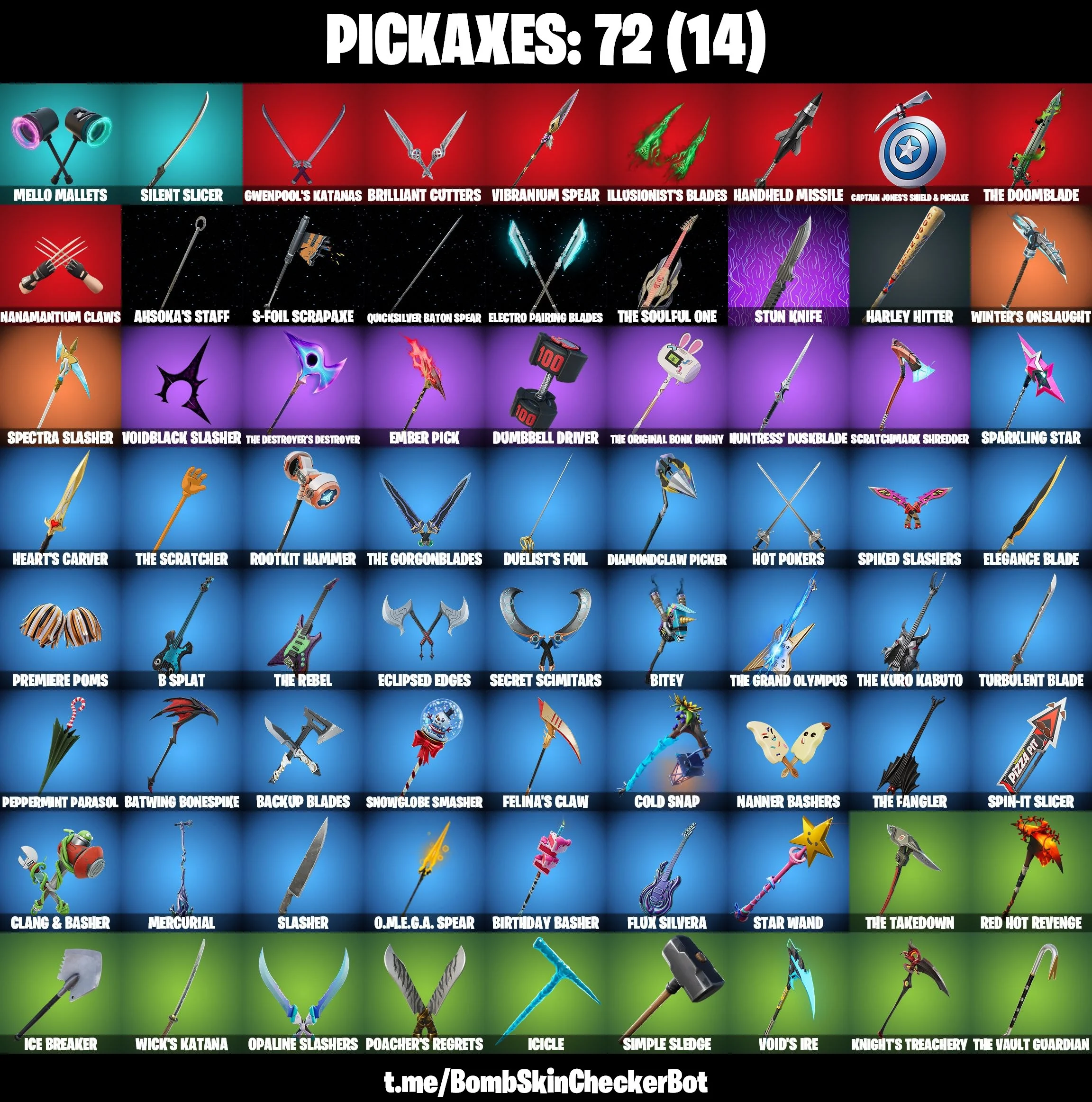 🔮48 Skins🔮 Surf Witch💎Star Wand💎Harley Hitter💎Crystal💎Astrea💎Khaby Lame💎Ashoka Tano💎Solid Snake💎John Wick💎Holiday Boxy💎Winterfest Bushranger