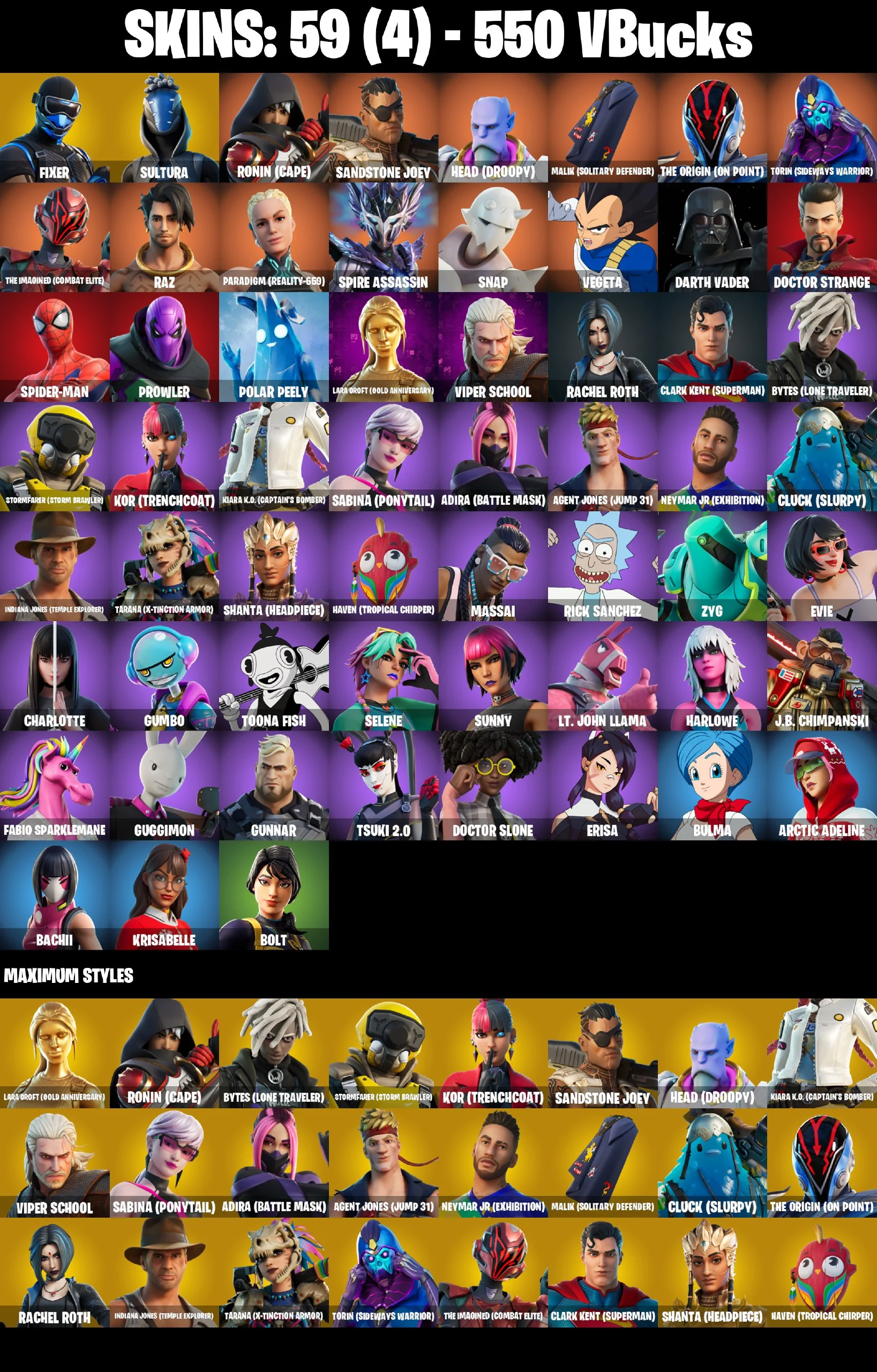 59 SKINS | FIXER | SULTURA | RONIN (CAPE) | SANDSTONE JOEY | HEAD (DROOPY) | MALIK (SOLITARY DEFENDER) | THE ORIGIN (ON POINT) | TORIN (SIDEWAYS WARRIOR) | THE IMAGINED (COMBAT ELITE) | RAZ | PARADIGM (REALITY-659) |